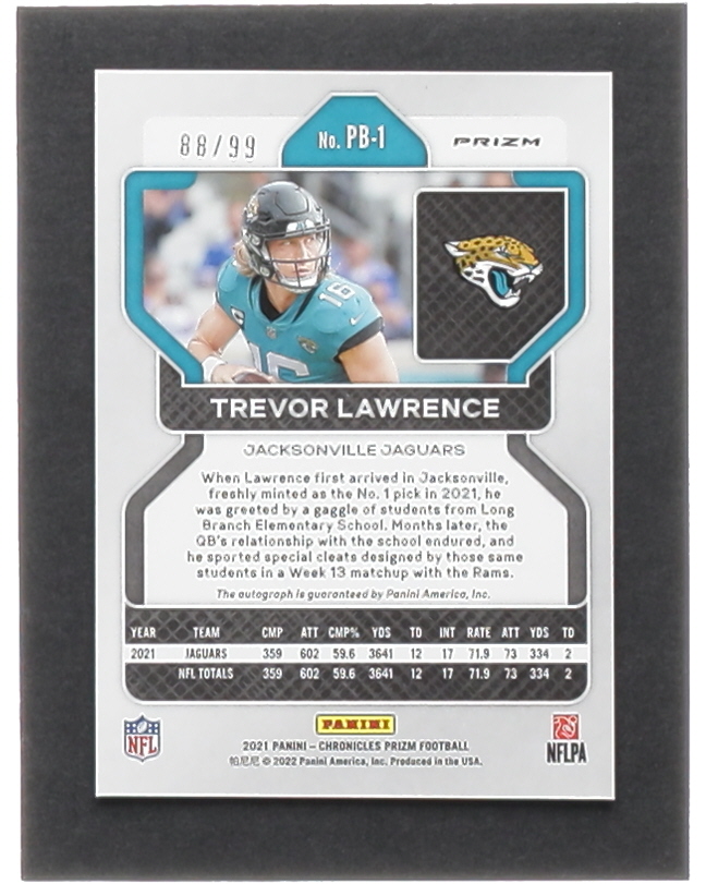 Trevor Lawrence 2021 Panini Chronicles Prizm Black Signatures Red #1 #88/99 RC