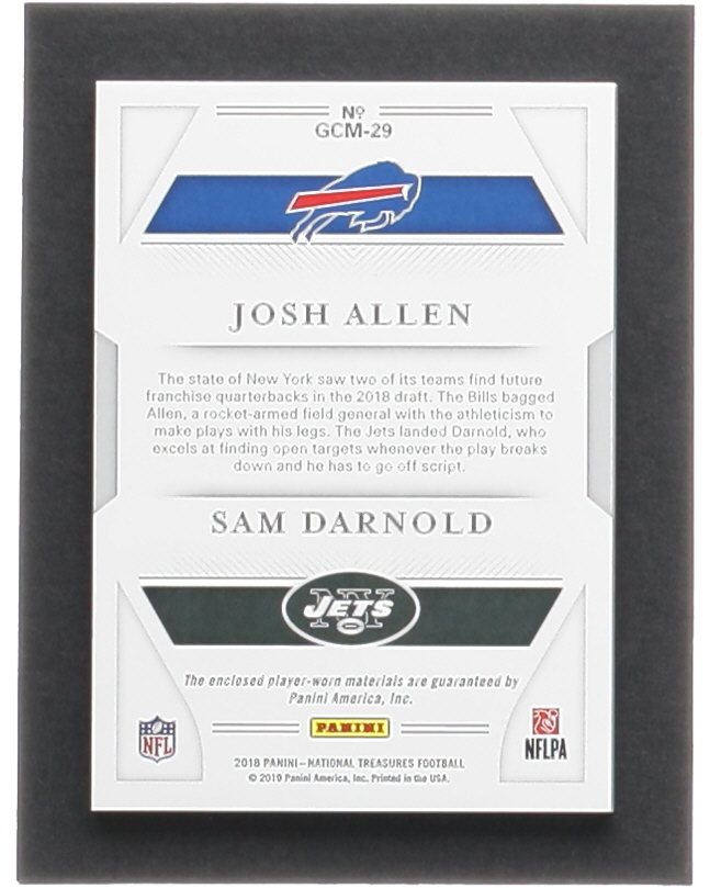 Josh Allen / Sam Darnold 2018 Panini National Treasures Rookie NFL Gear Combo Materials Prime #29 RC #10/25