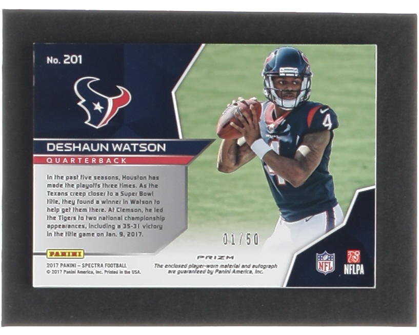 Deshaun Watson 2017 Panini Spectra Neon Green #201 Jersey Autograph #01/50 RC