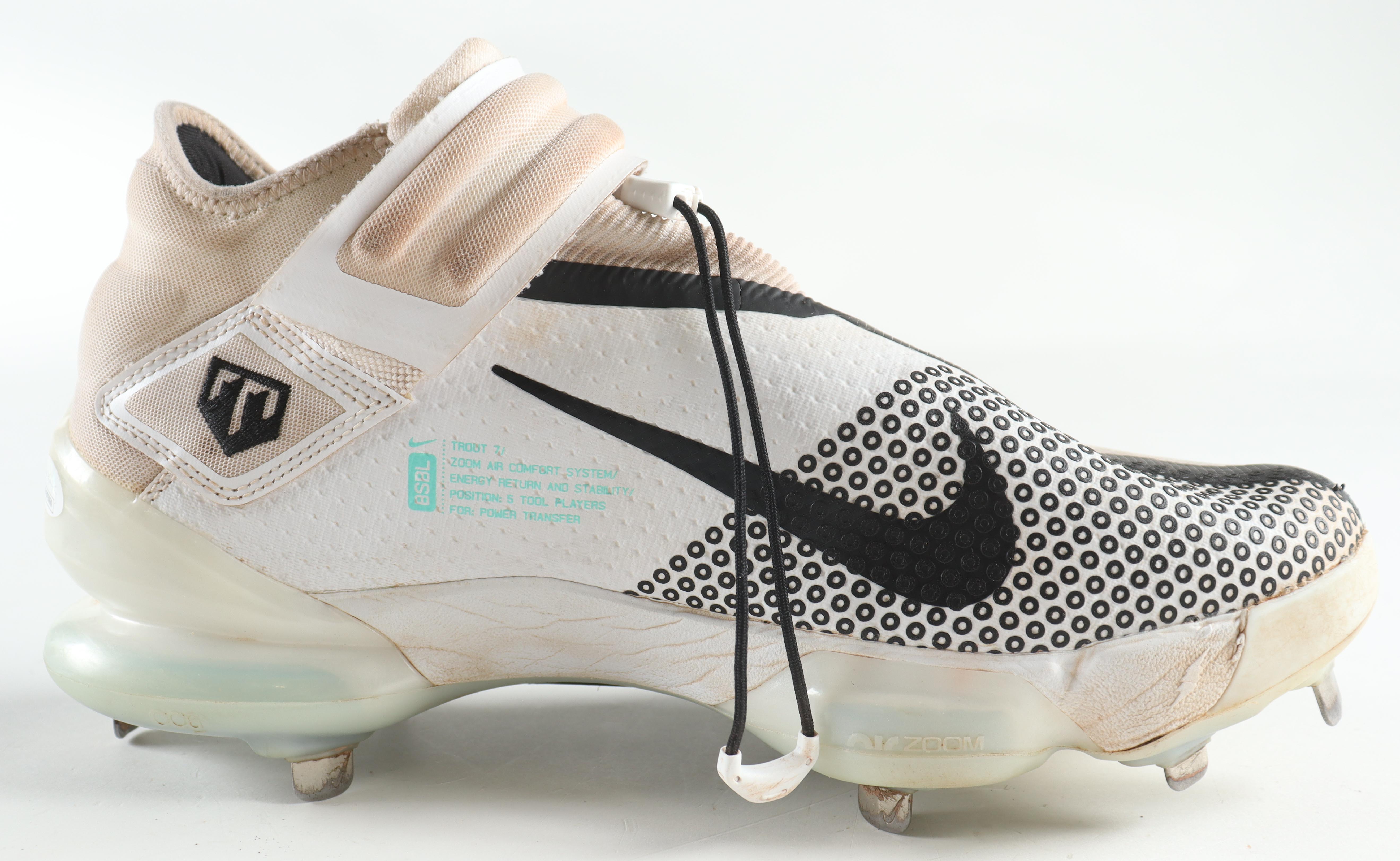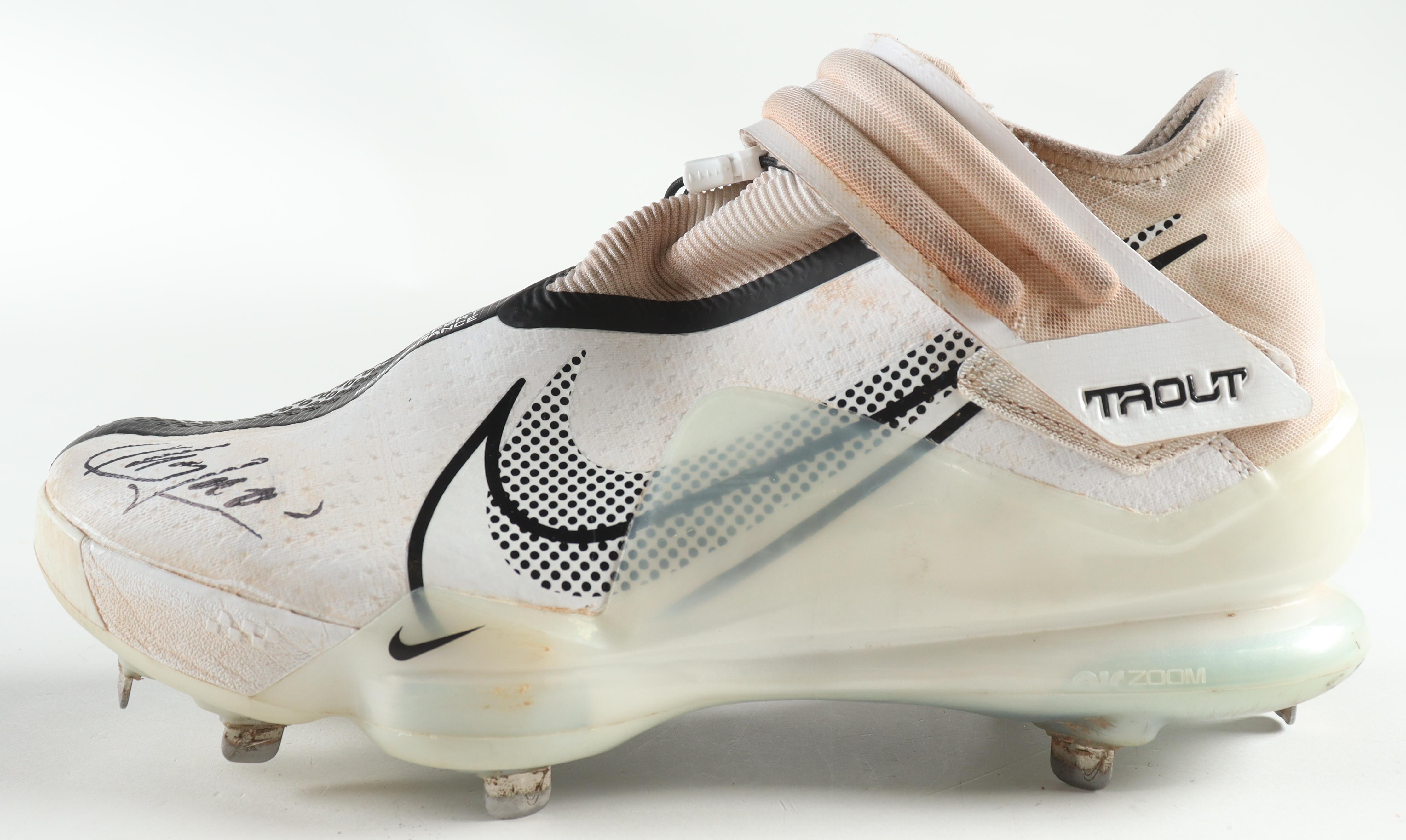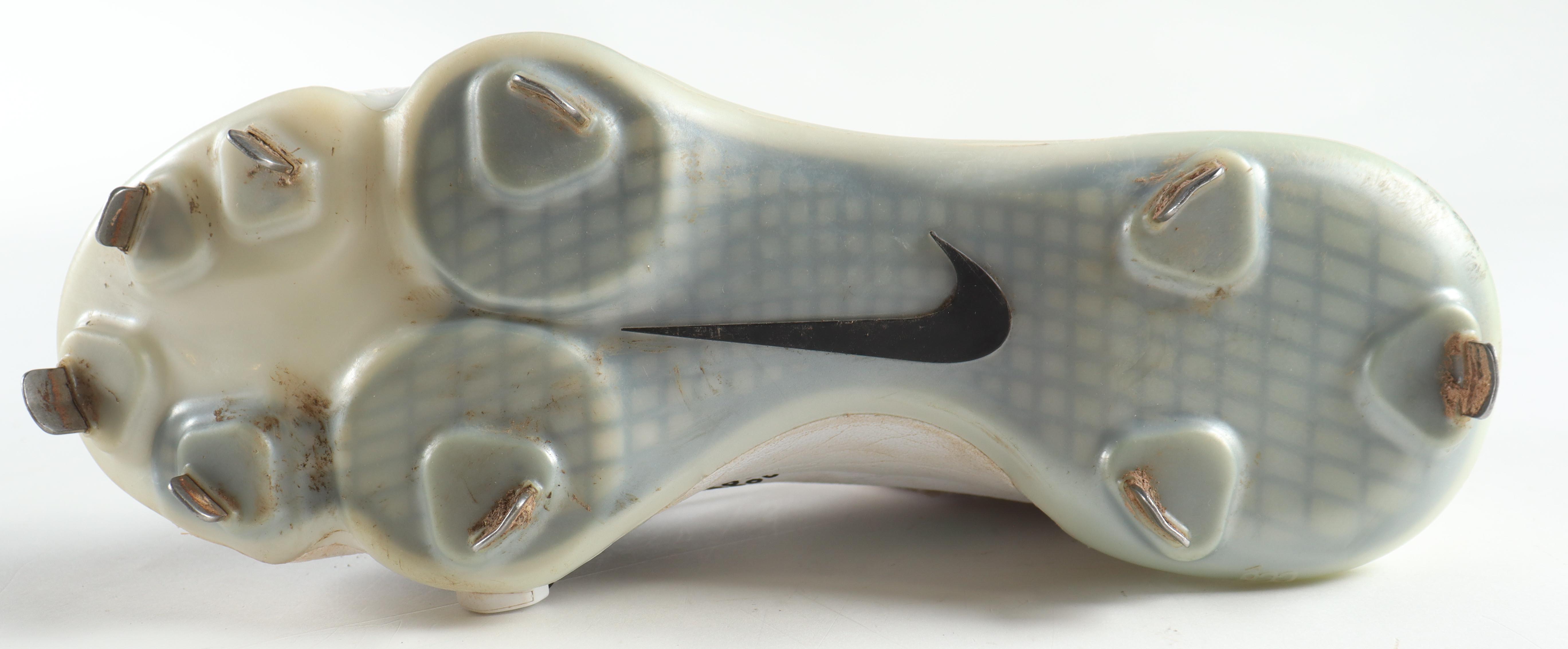 Nike baseball cleat, size 11.5. Hand-signed by Aroldis Chapman (Texas Rangers). Please note, the cleat has scuffing and staining.