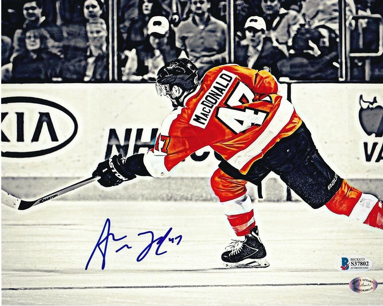 Photo measures 8" x 10" in size and has been hand-signed by Andrew MacDonald (Philadelphia Flyers).