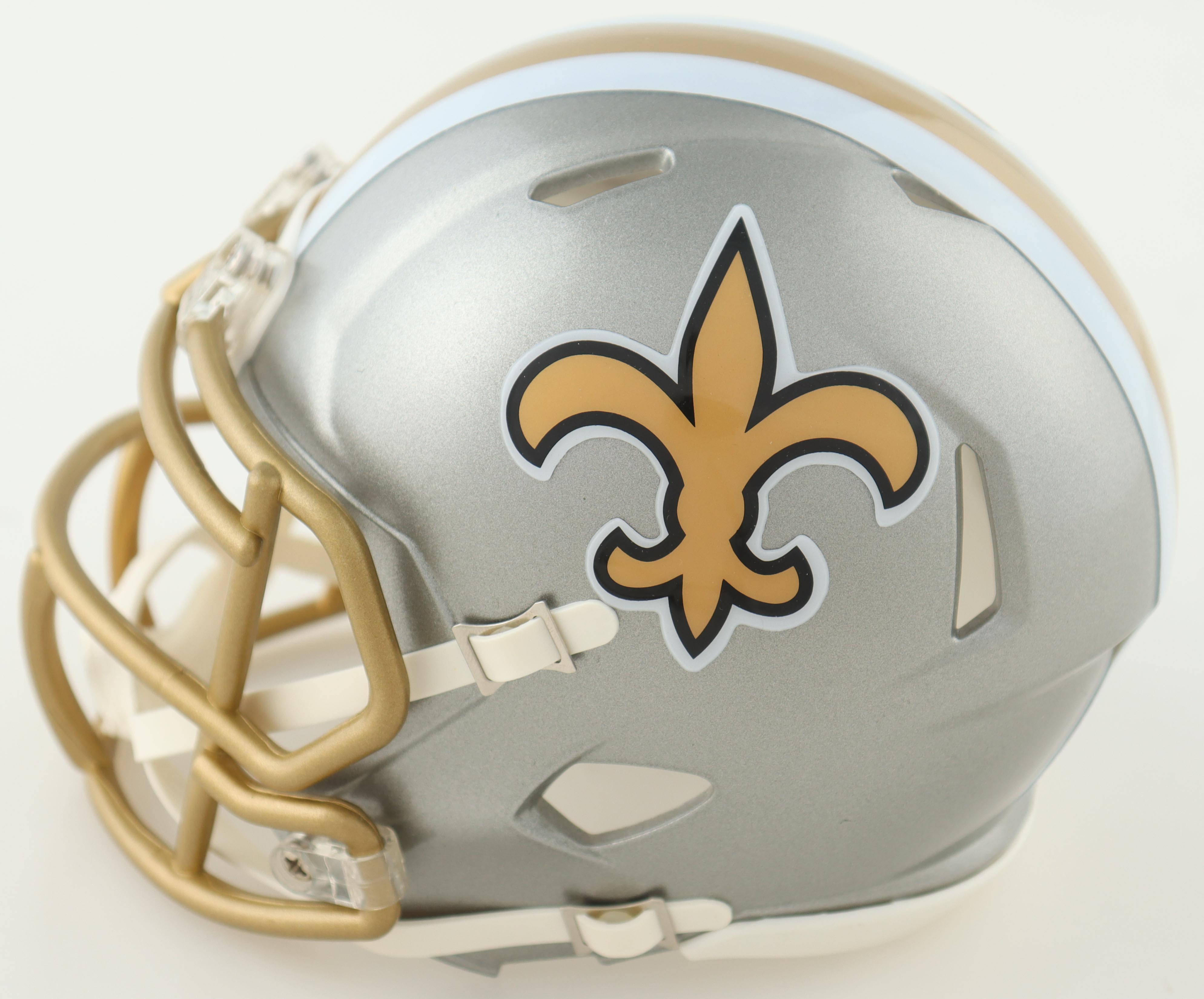 Riddell New Orleans Saints flash alternate speed mini helmet. Hand-signed by Isaiah Foskey.