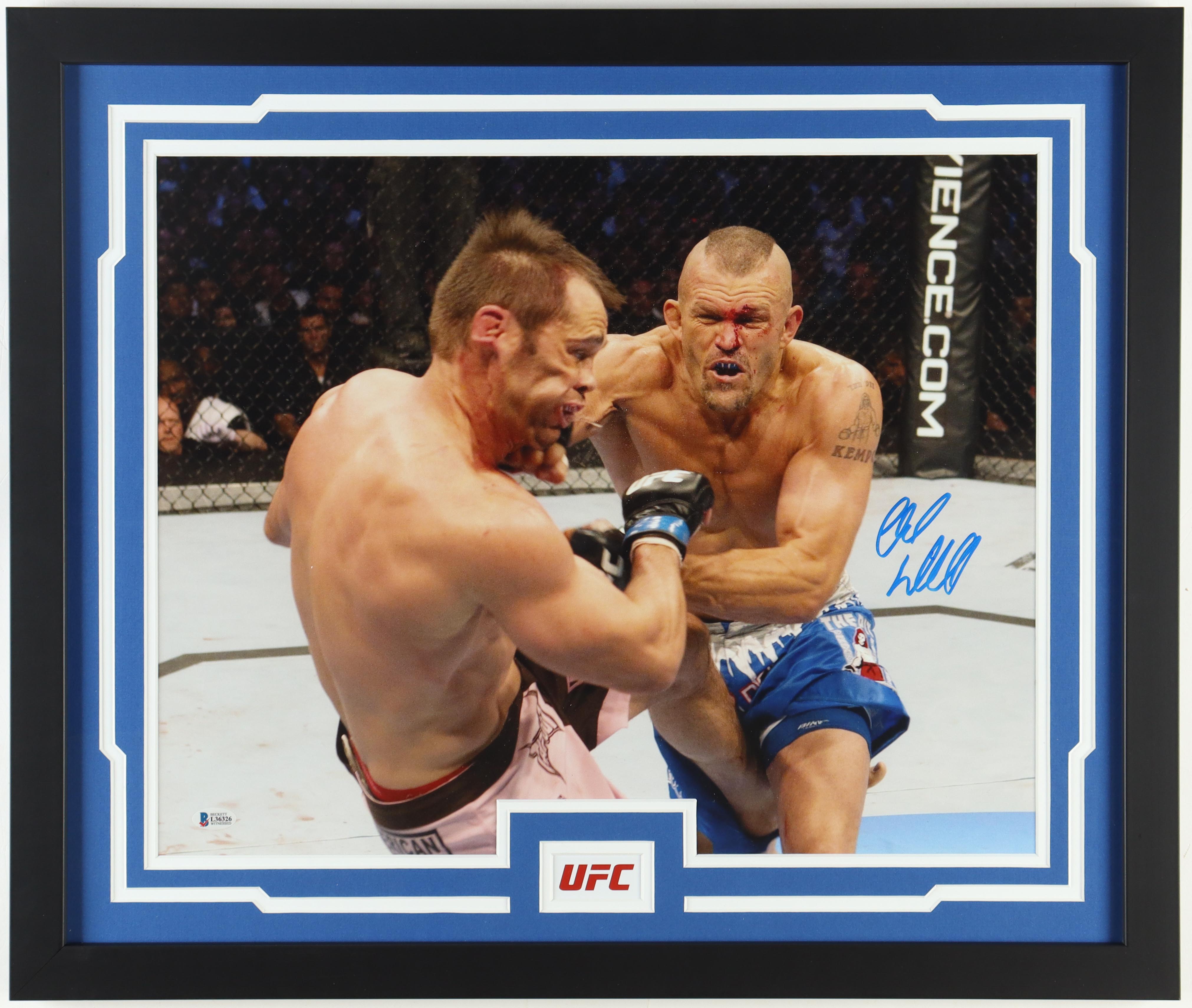 Custom framed display measures approximately 22.5" x 26.5" in size and features a photo that has been hand-signed by Chuck Liddell (HOF).