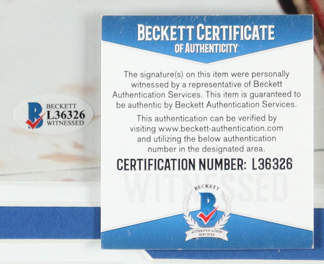 The autograph includes an official Beckett Authentication Services serially-numbered hologram and matching COA for authenticity purposes. The signing of this item was witnessed by Beckett.