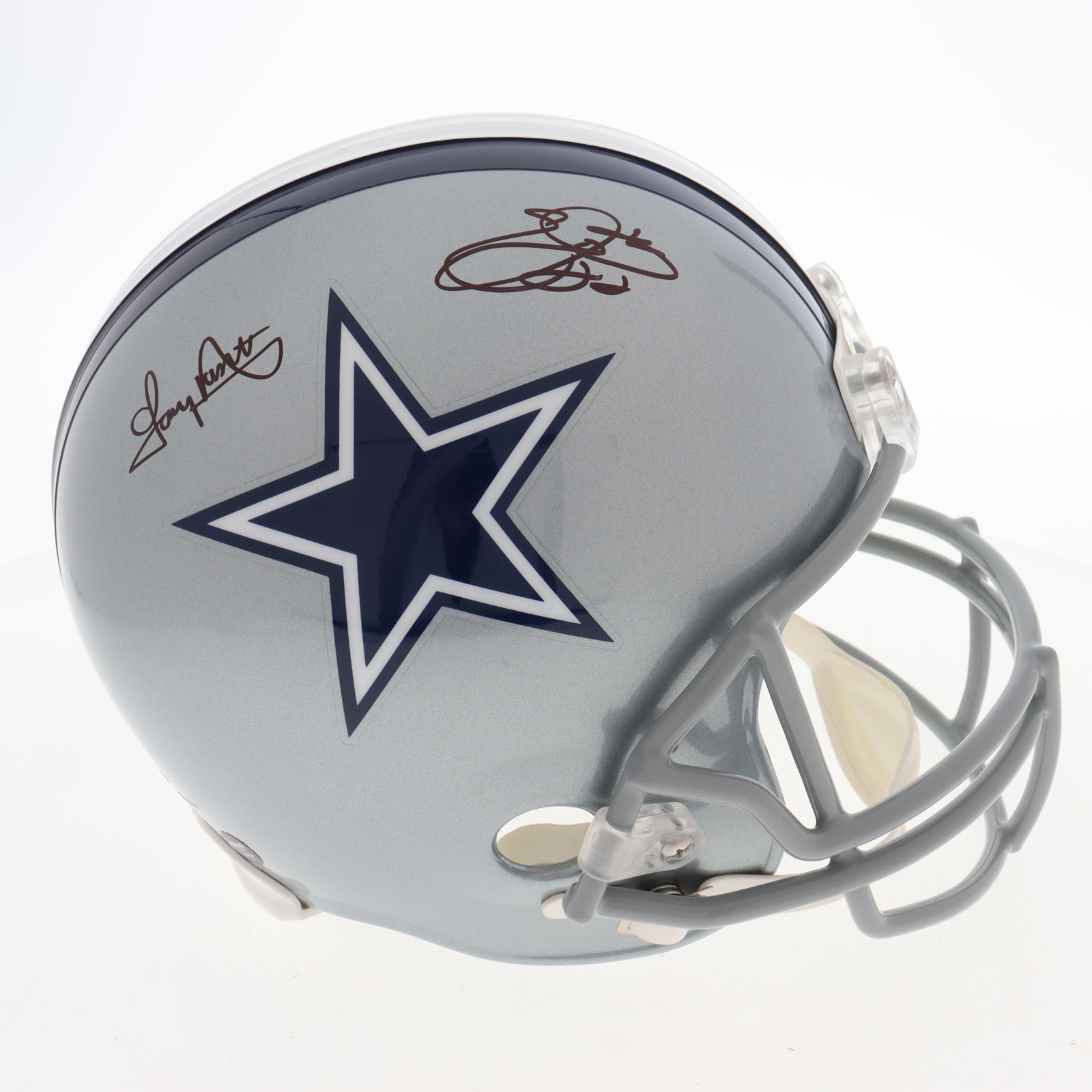 Riddell Dallas Cowboys full-size replica helmet. Hand-signed by Emmitt Smith (HOF) and Tony Dorsett (HOF).