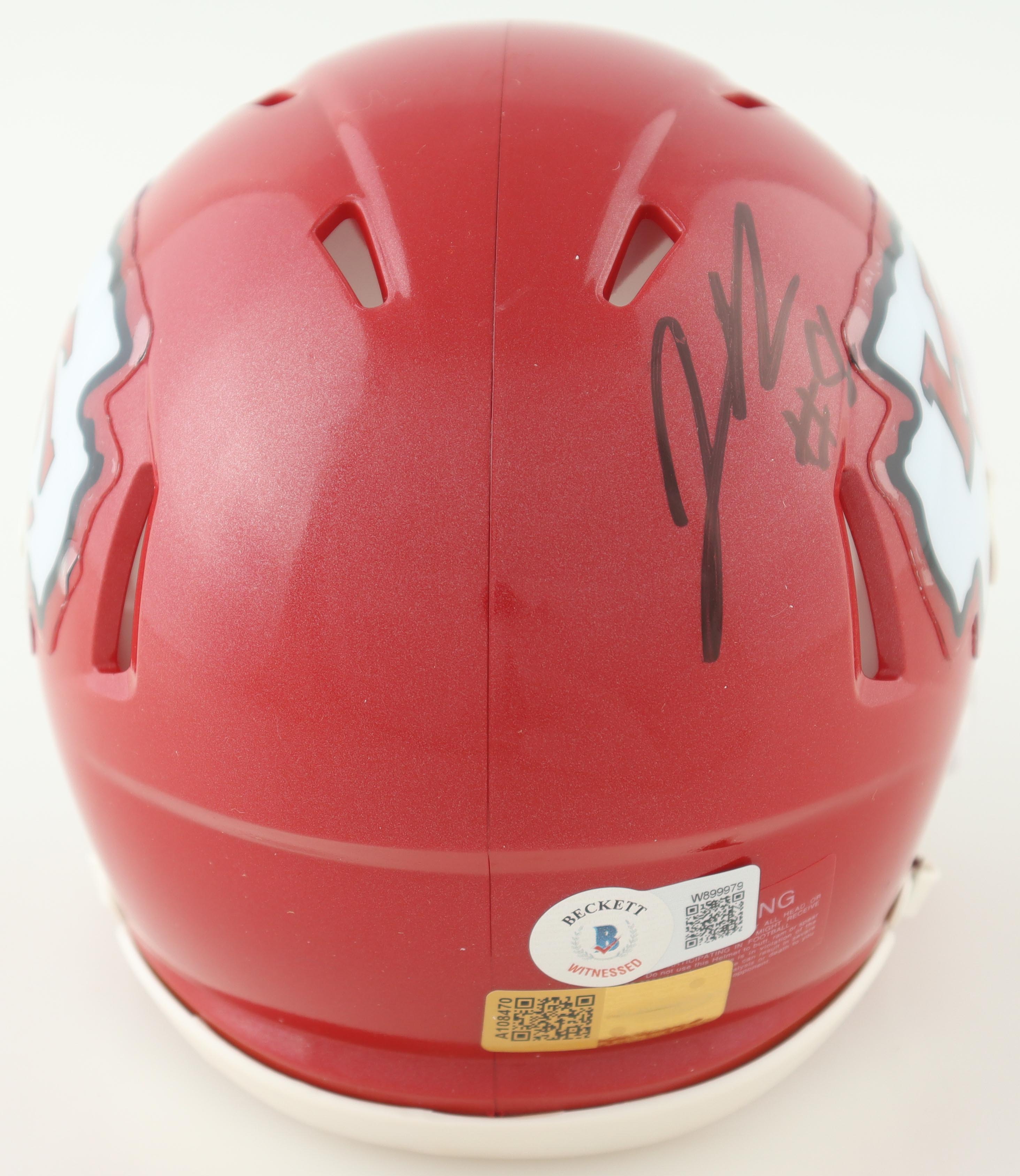 Riddell Kansas City Chiefs Speed mini helmet has been hand-signed by Justyn Ross.
