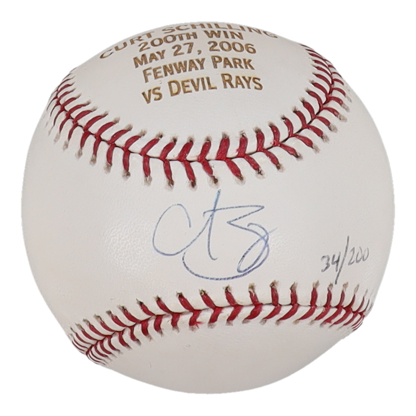 Rawlings Official Major League Commemorative baseball. Hand-signed by Curt Schilling (Boston Red Sox). Item is hand-numbered limited edition #34/200.