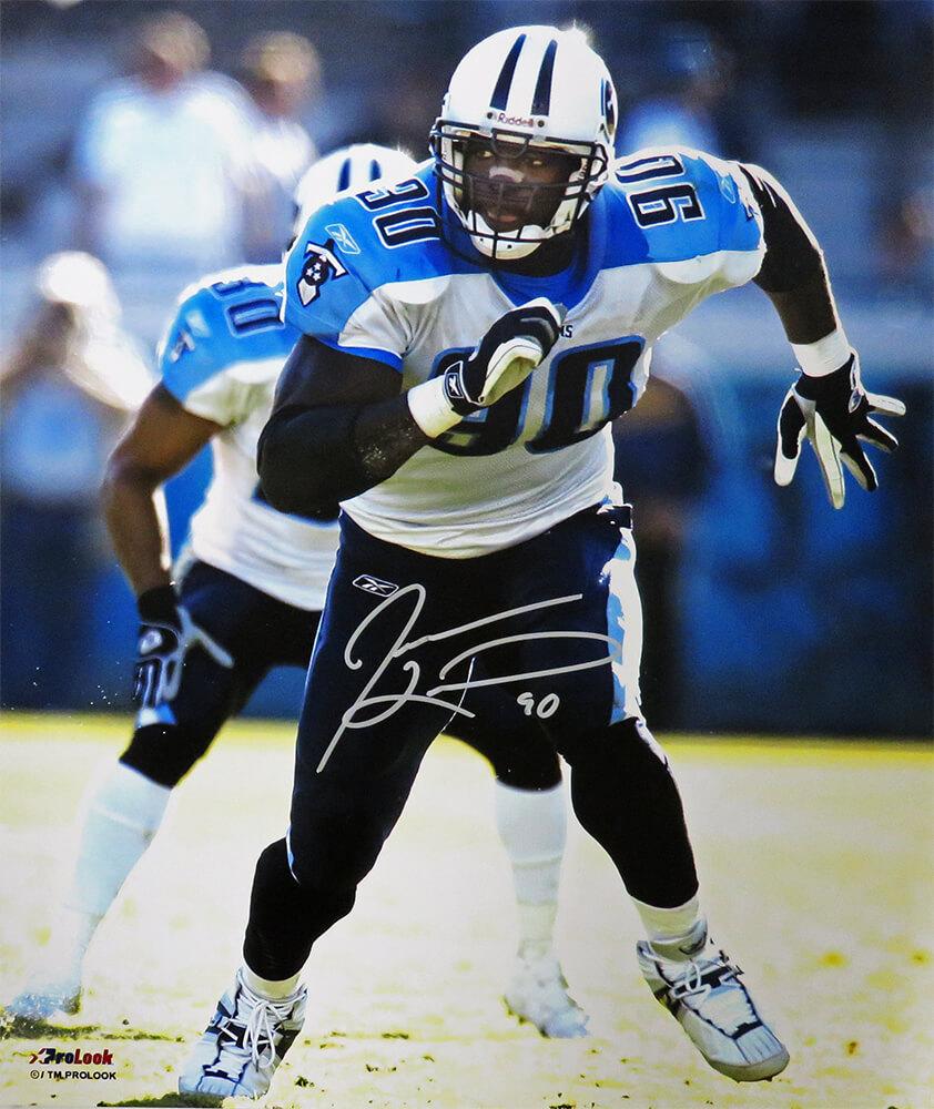 Photo measures 16" x 20" in size and has been hand-signed by Jevon Kearse (Tennessee Titans).