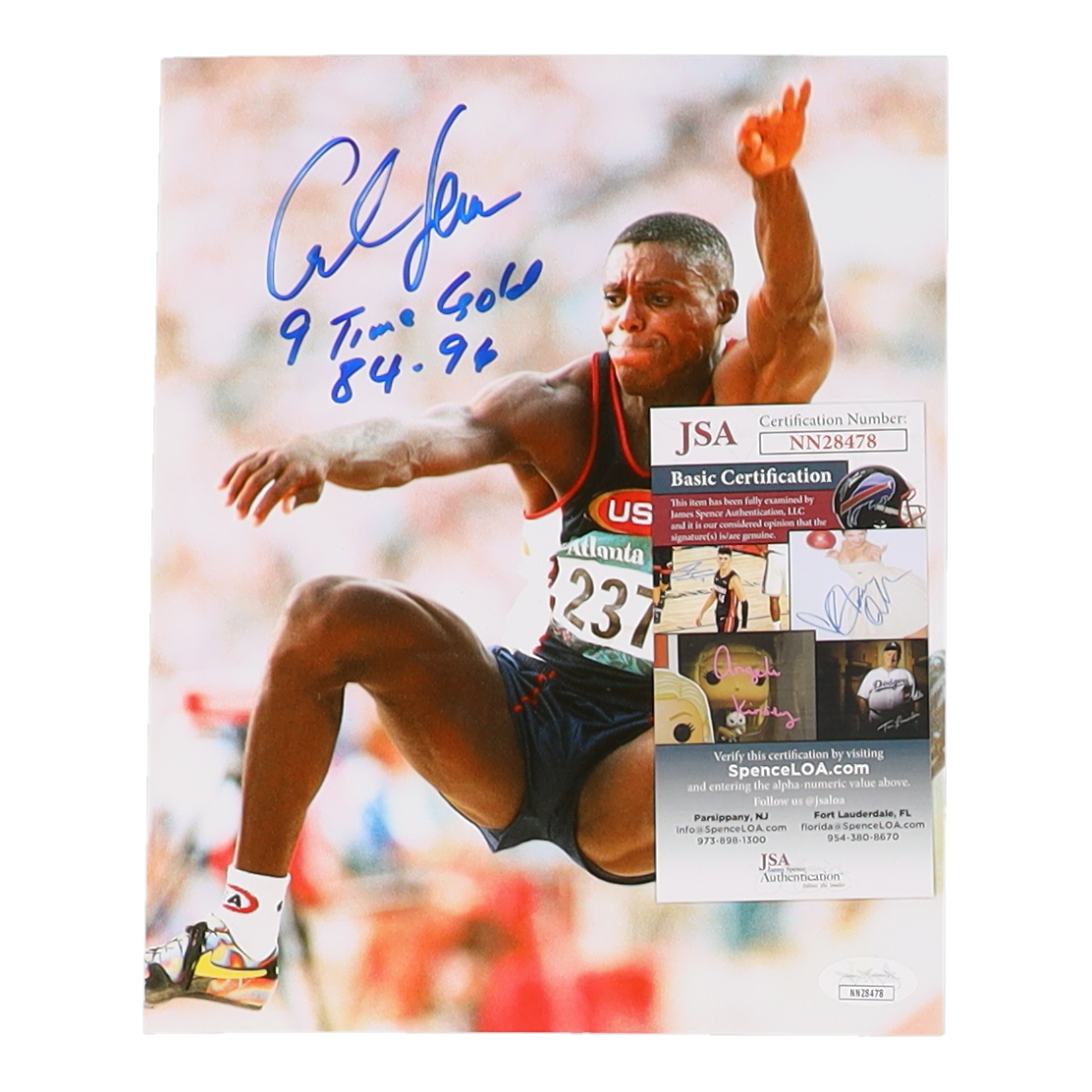 Carl Lewis Signed Team USA 8x10 Photo Inscribed "9 Time Gold 84-96" (JSA)