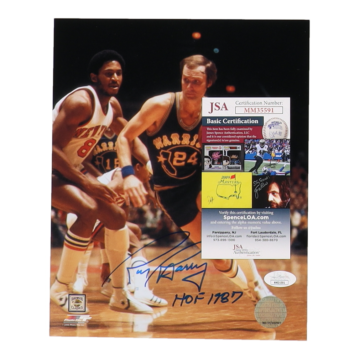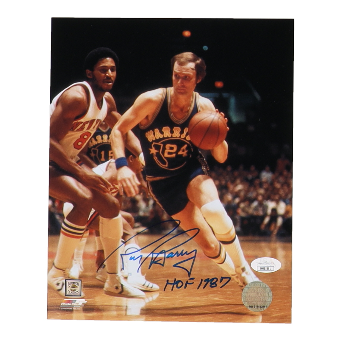 Rick Barry Signed Warriors 8x10 Photo Inscribed "HOF 1987" (JSA)