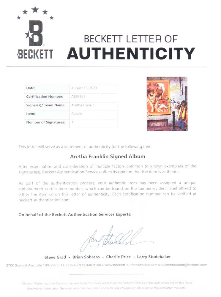 Aretha Franklin Signed "Who's Zoomin' Who?" Vinyl Record Album Sleeve (Beckett)