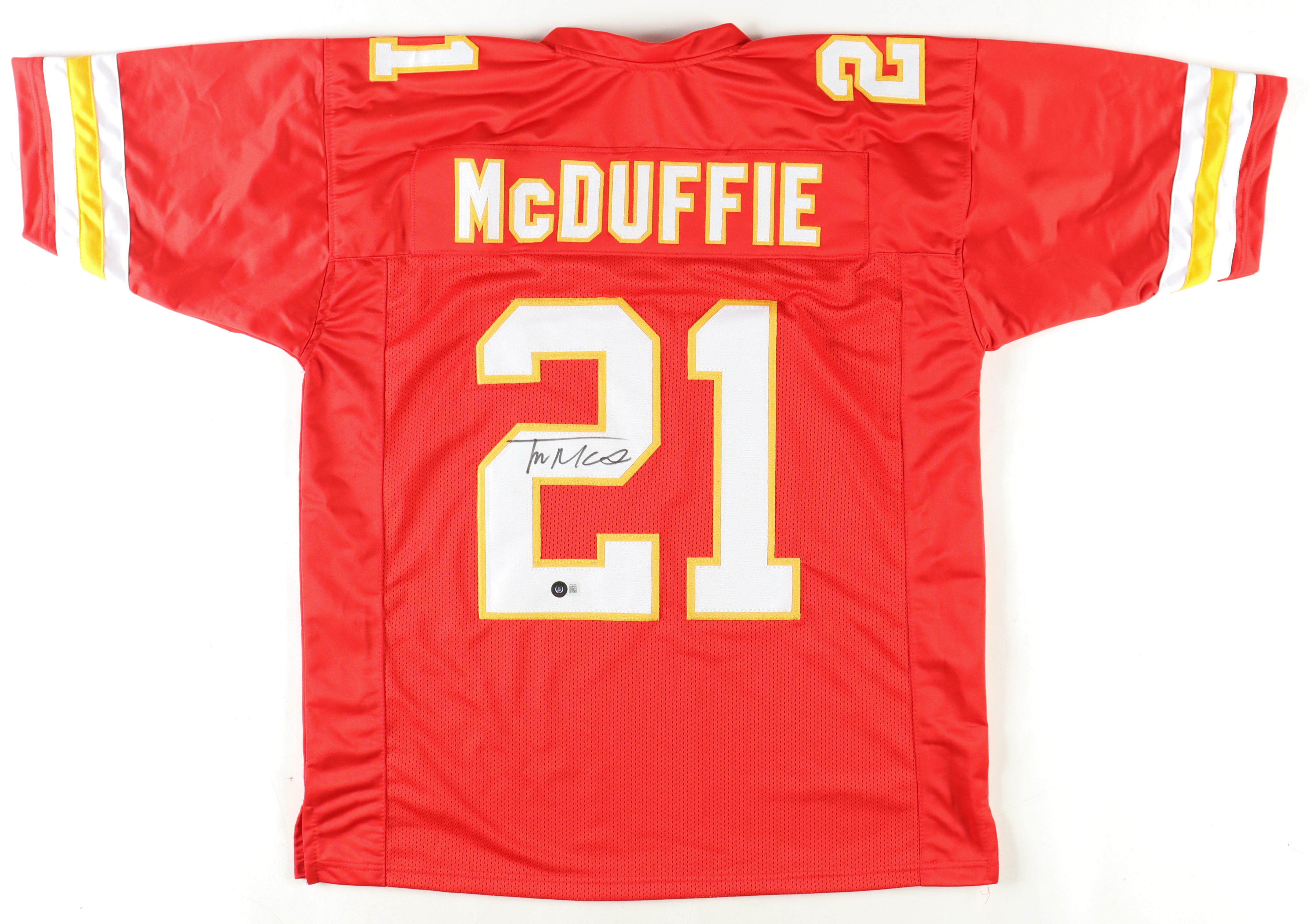 Custom jersey with everything sewn on, size XL. Has been hand-signed by Trent McDuffie.