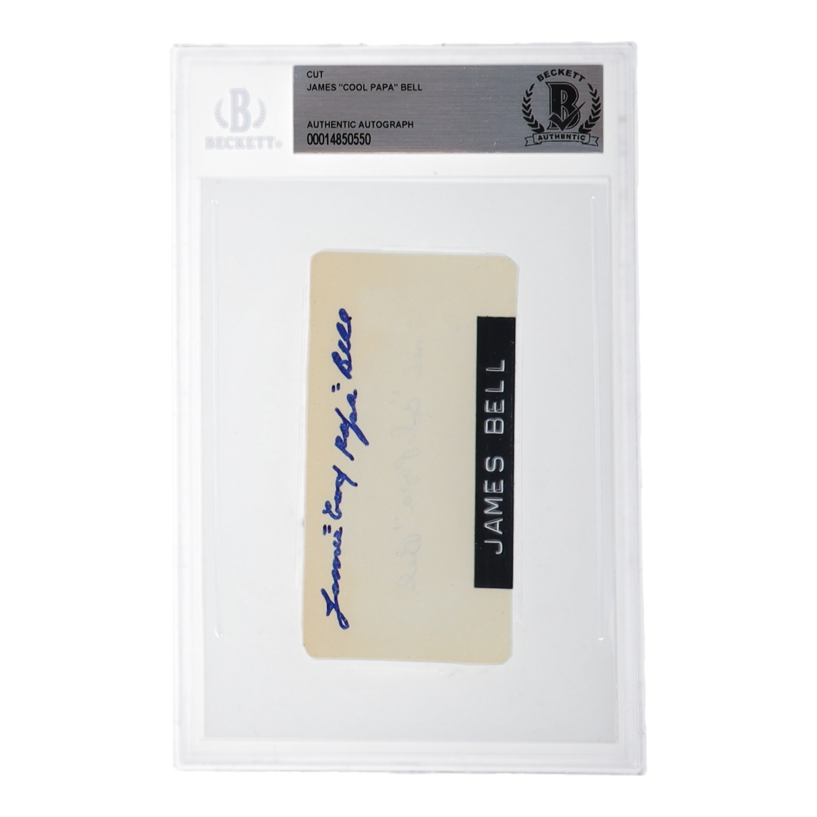 Cut measures approximately 2" x 4" in size. Hand-signed by James "Cool Papa" Bell (D. 1991, Homestead Grays, HOF).
