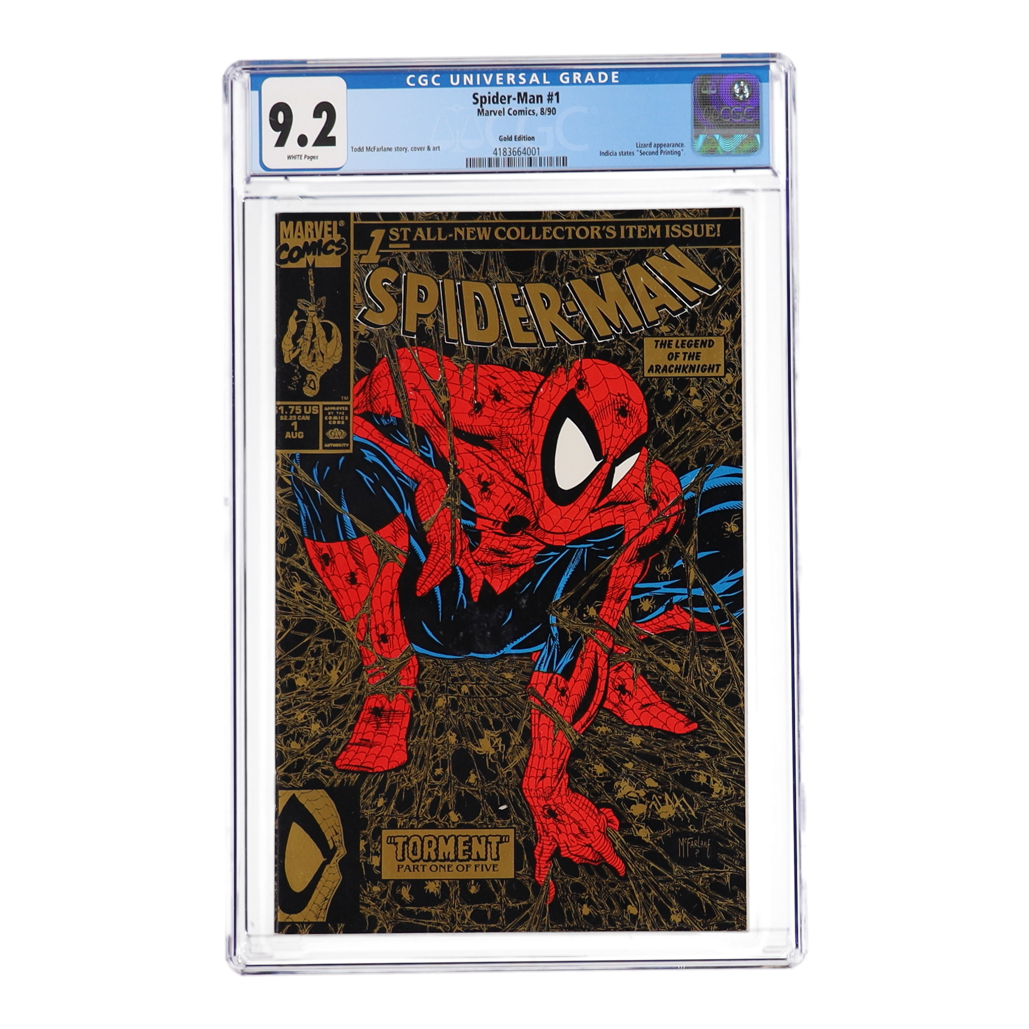 August 1990 "Spider-Man: Torment" Issue #1 Gold Edition Marvel Comic Book has been graded CGC 9.2. See photos for more details regarding the condition of the comic.