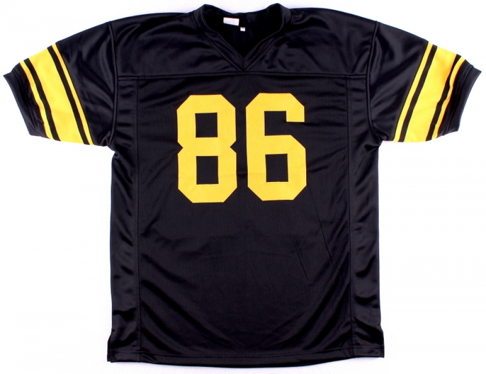 Custom on-field style jersey. Everything is sewn on, size XL. Hand-signed in black felt-tip pen by Hines Ward.