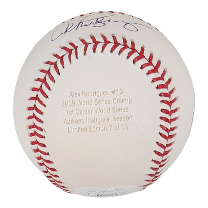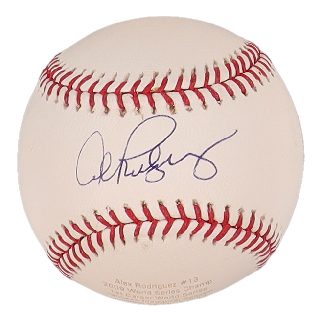 Rawlings Official Major League Commemorative baseball. Hand-signed by Alex Rodriguez (New York Yankees). Please note, the baseball is naturally toned.