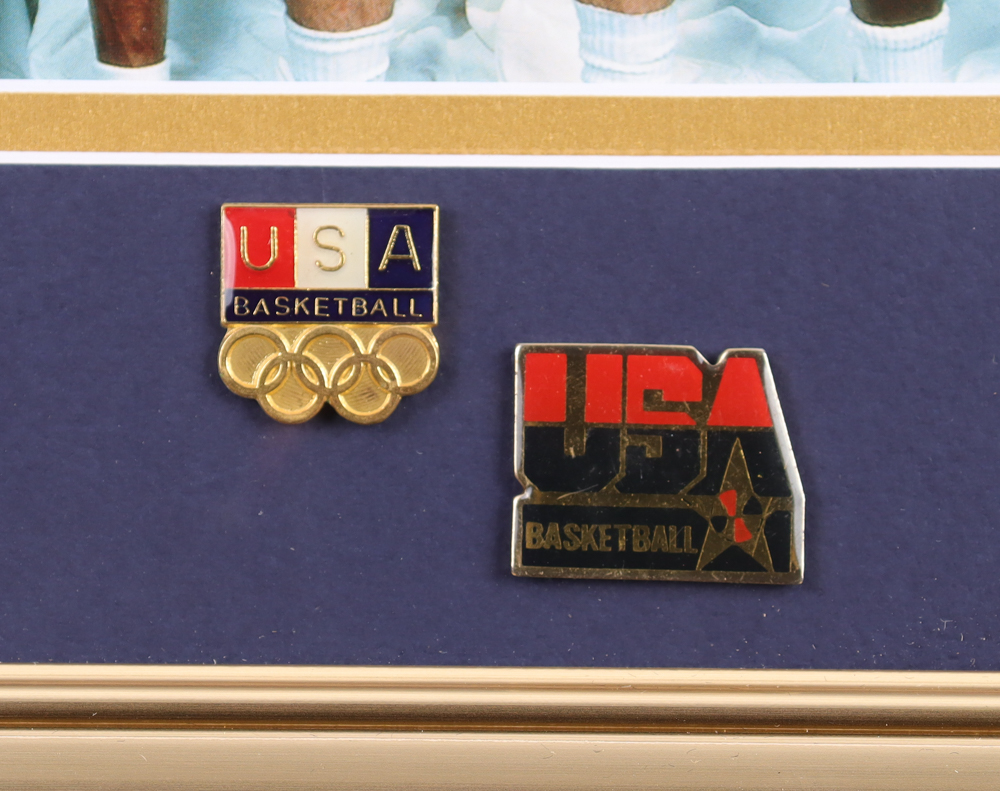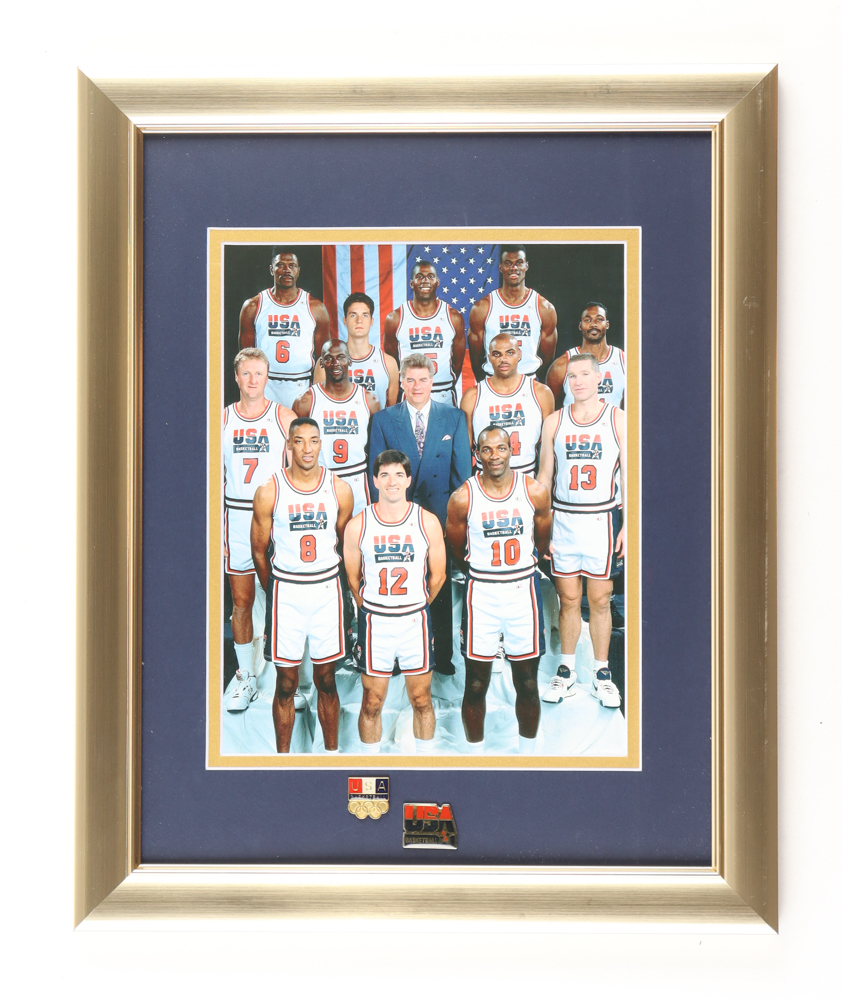 "Dream Team" With Michael Jordan USA Olympic Basketball Custom Framed Photo Display with (2) USA Olympic Basketball Pins