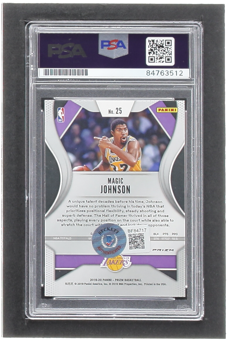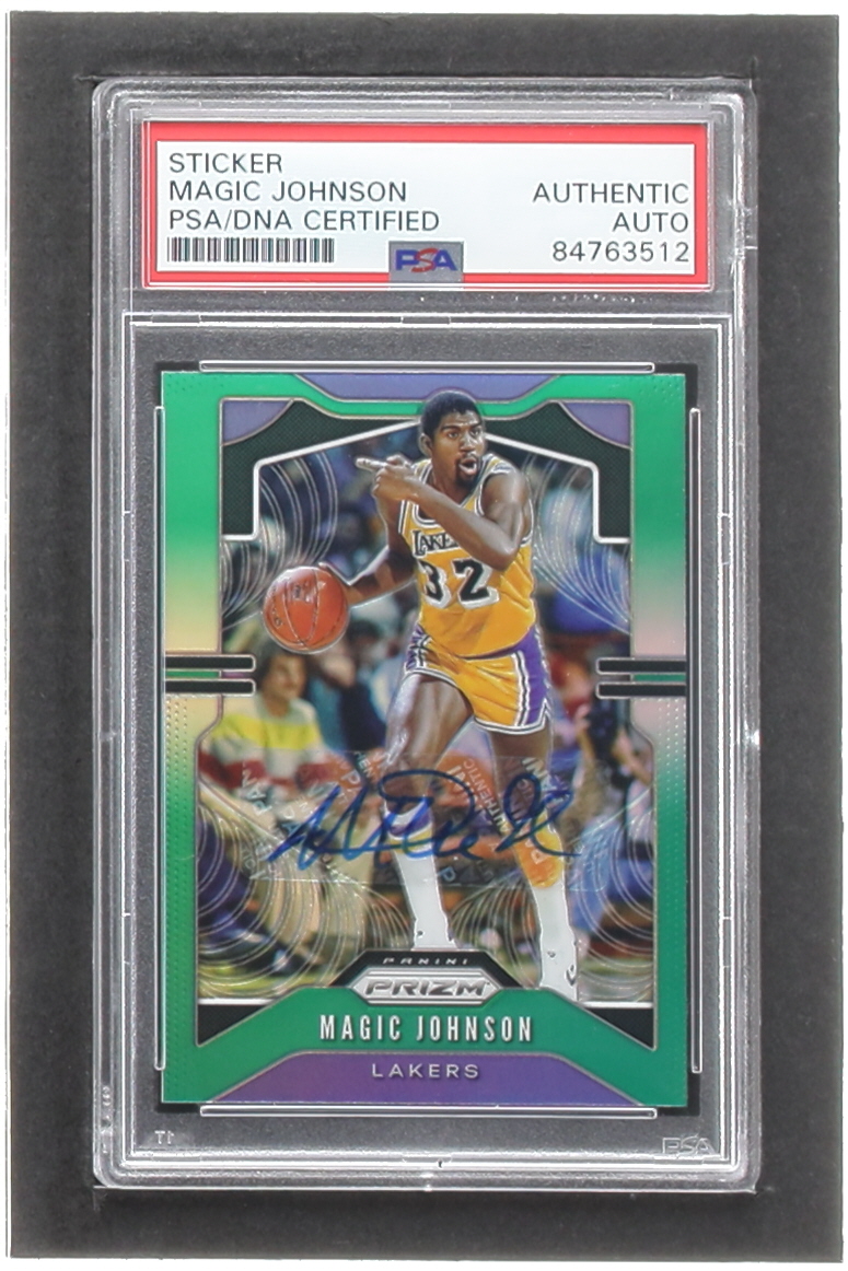Magic Johnson Signed Sticker On 2019-20 Panini Prizm Prizms Green #25 (PSA)