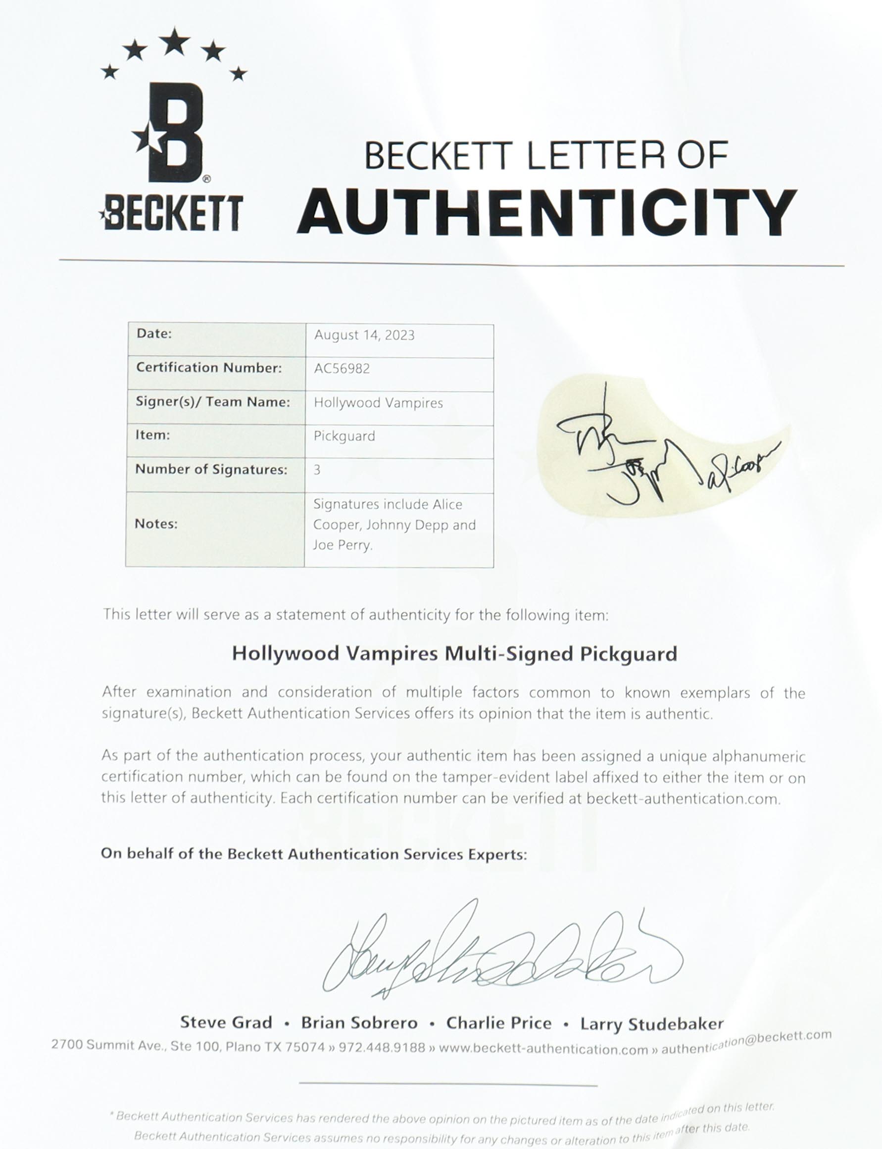 Johnny Depp, Alice Cooper & Joe Perry Signed "Hollywood Vampires" Custom Full-Size Acoustic Guitar (Beckett)