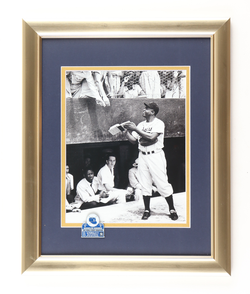 Jackie Robinson At Ebbetts Field Dodgers Custom Framed Photo Display With Official 1955 World Series Lapel Pin