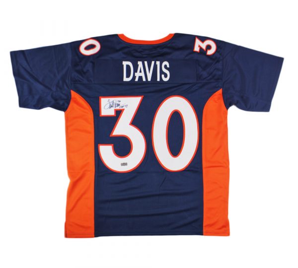 Custom style jersey. Everything sewn on, size XL. Hand-signed and inscribed by Terrell Davis (HOF).