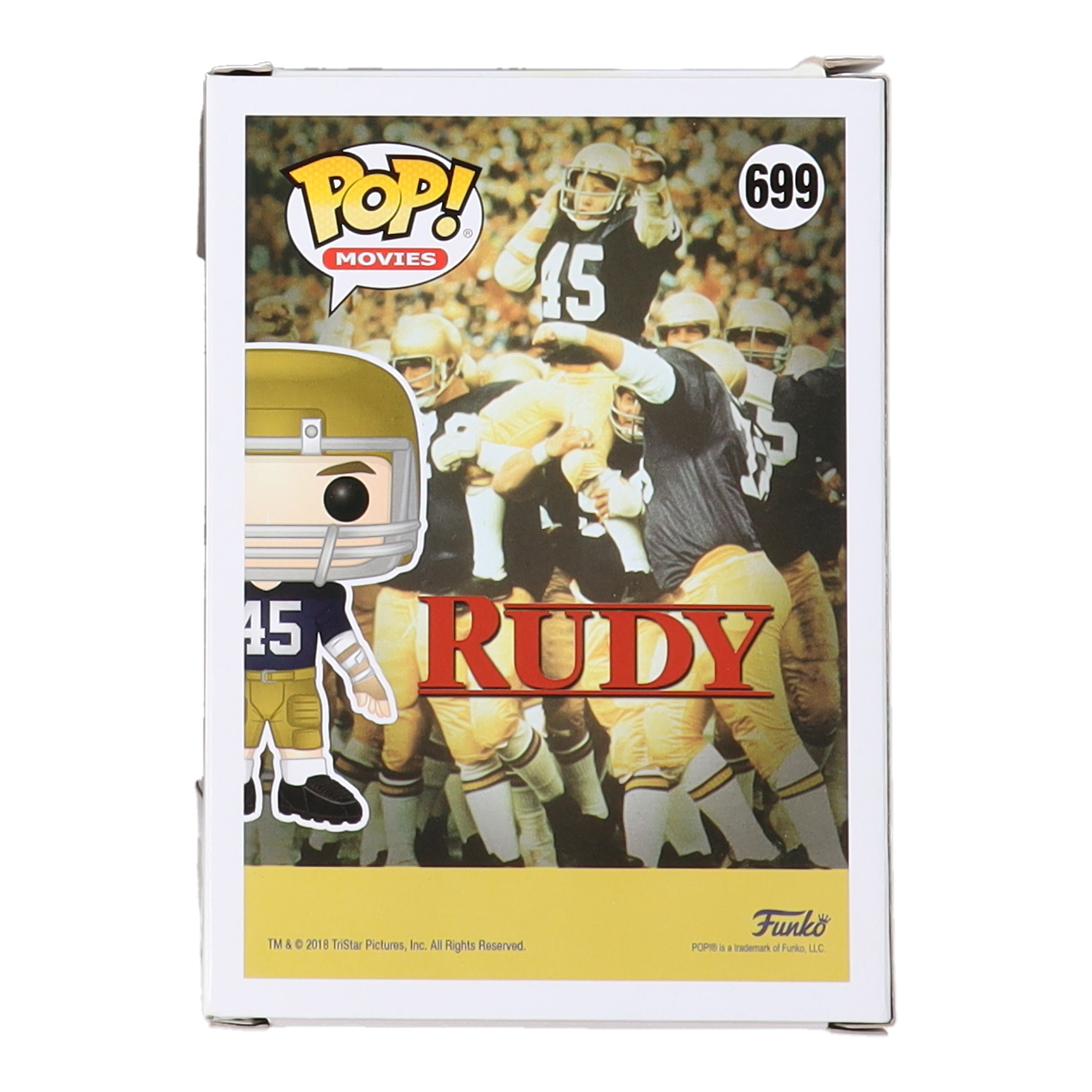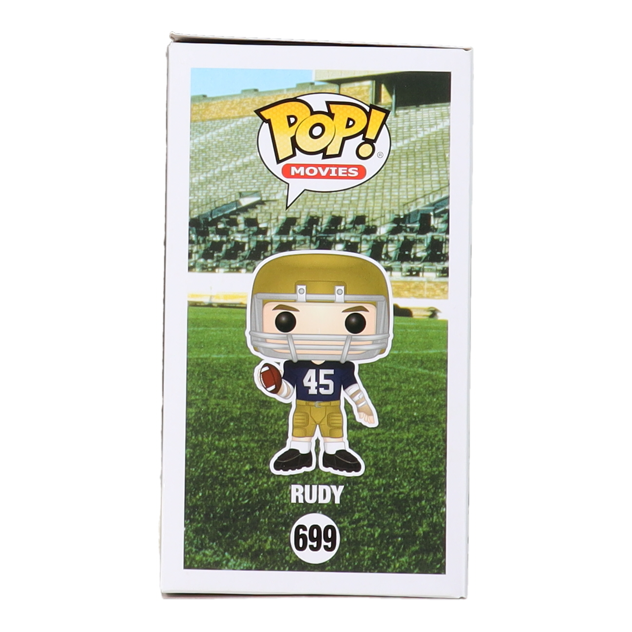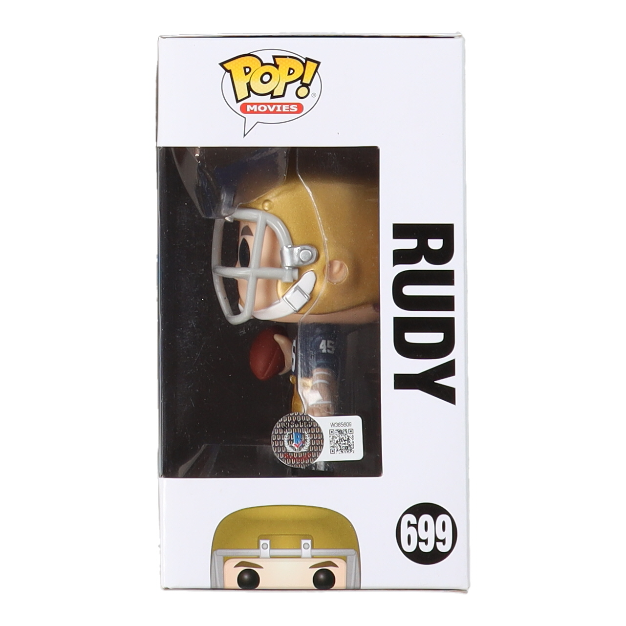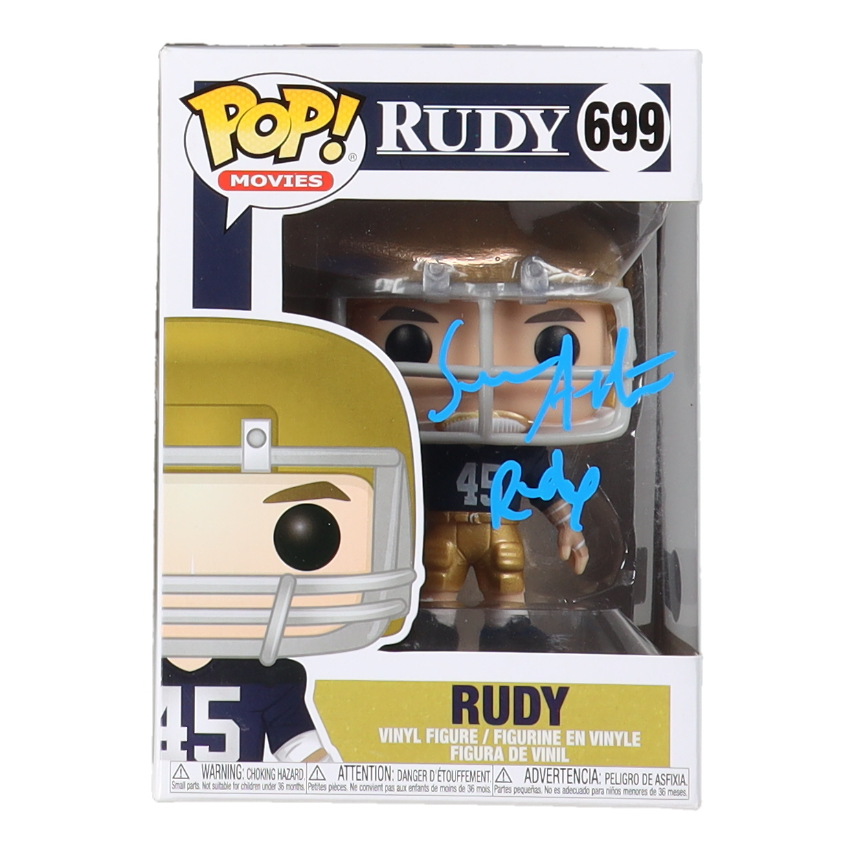 Funko Pop! figure measures approximately 4" tall. Hand-signed and inscribed on the packaging by Sean Astin (Rudy Ruettiger). Please note, the packaging shows signs of handling and the top of the packaging shows some yellowish residue.