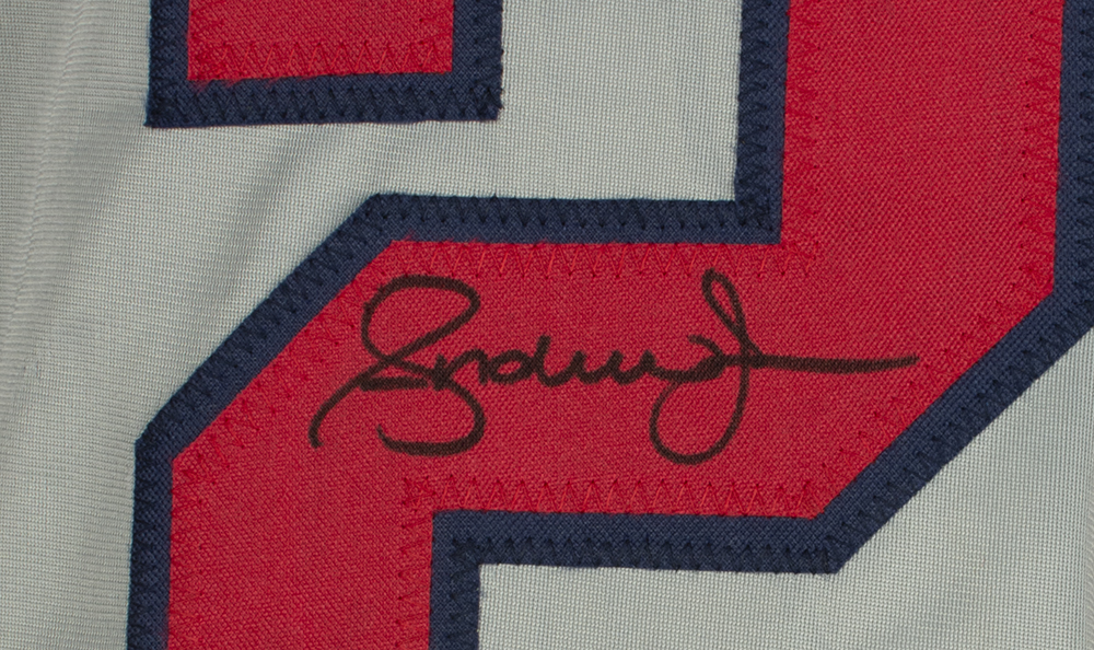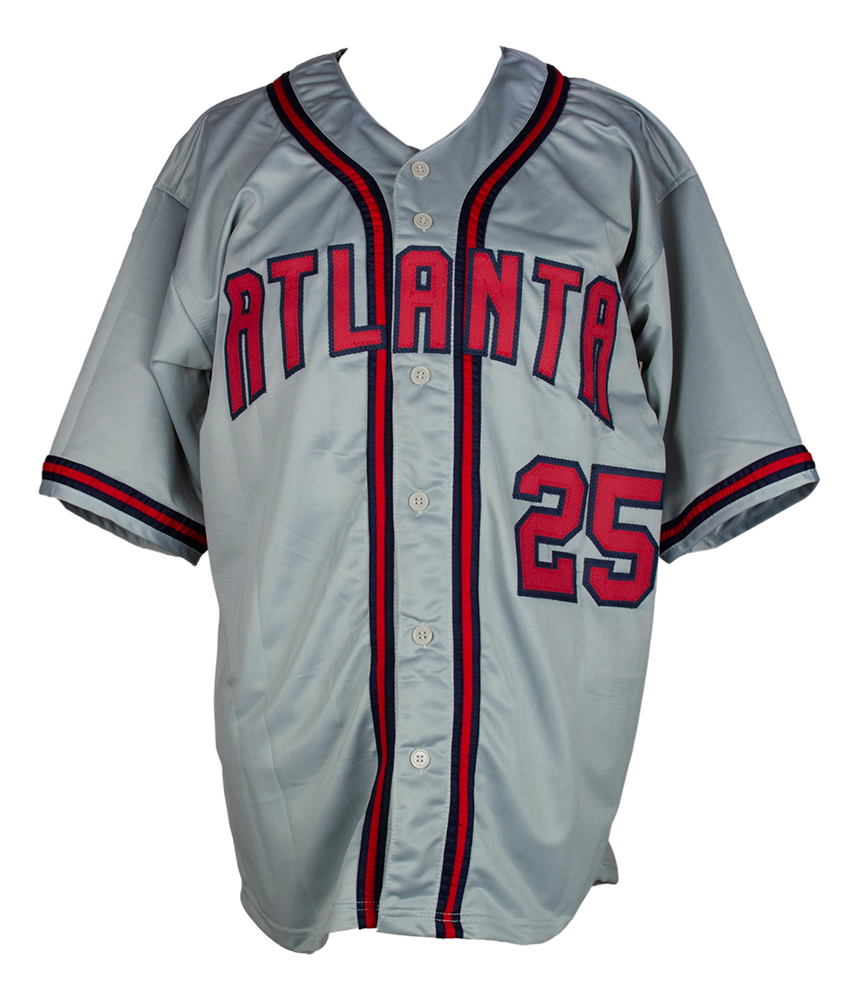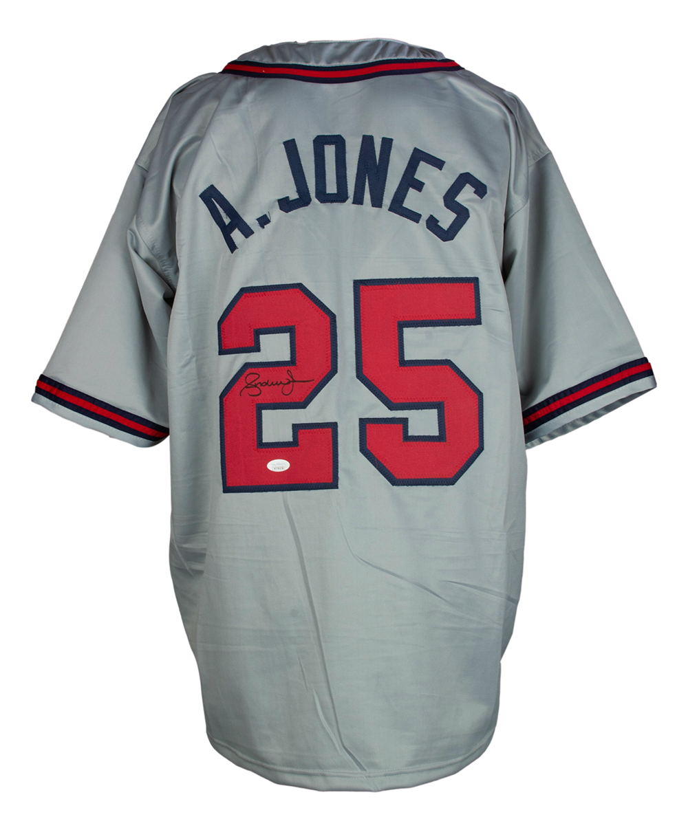 Custom style jersey. Everything sewn on, size XL. Hand-signed by Andruw Jones.