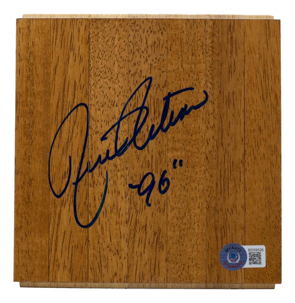 Floor board measures 5" x 5" in size and has been hand-signed and inscribed by Rick Pitino (HOF).