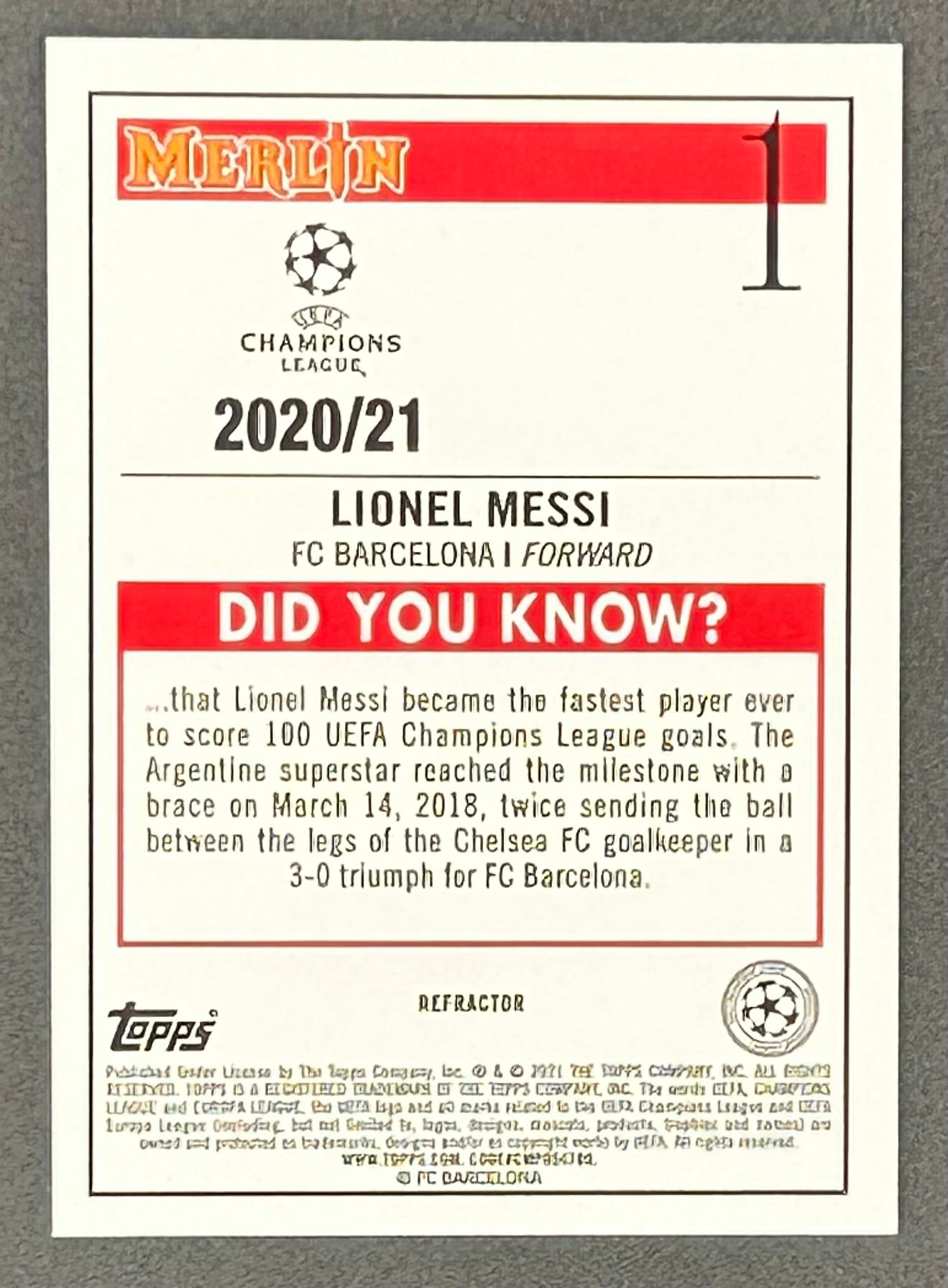 Lionel Messi 2020-21 Merlin UEFA Champions League Refractors #1