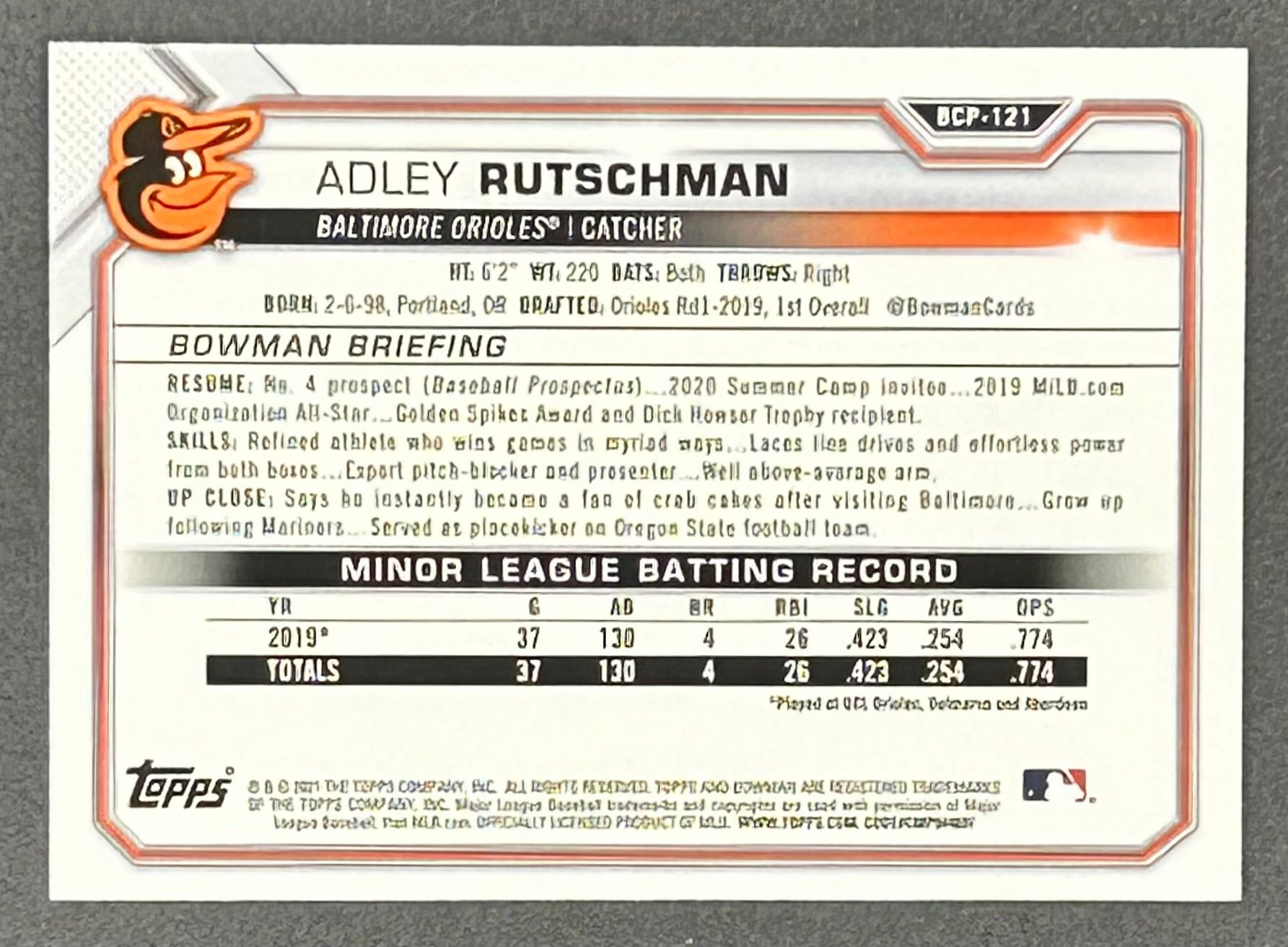 Adley Rutschman 2021 Bowman Chrome Mega Box Prospects Refractors #BCP121 RC