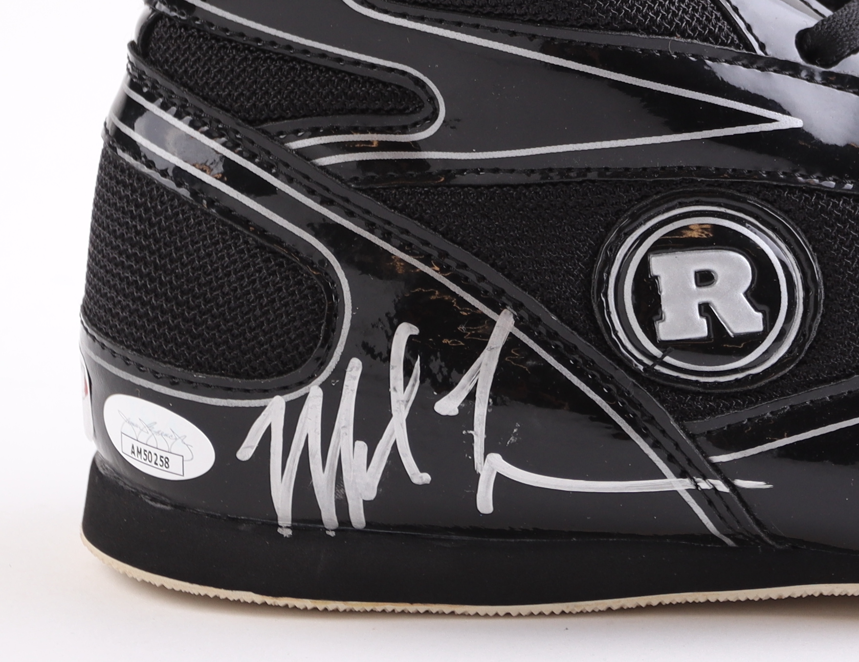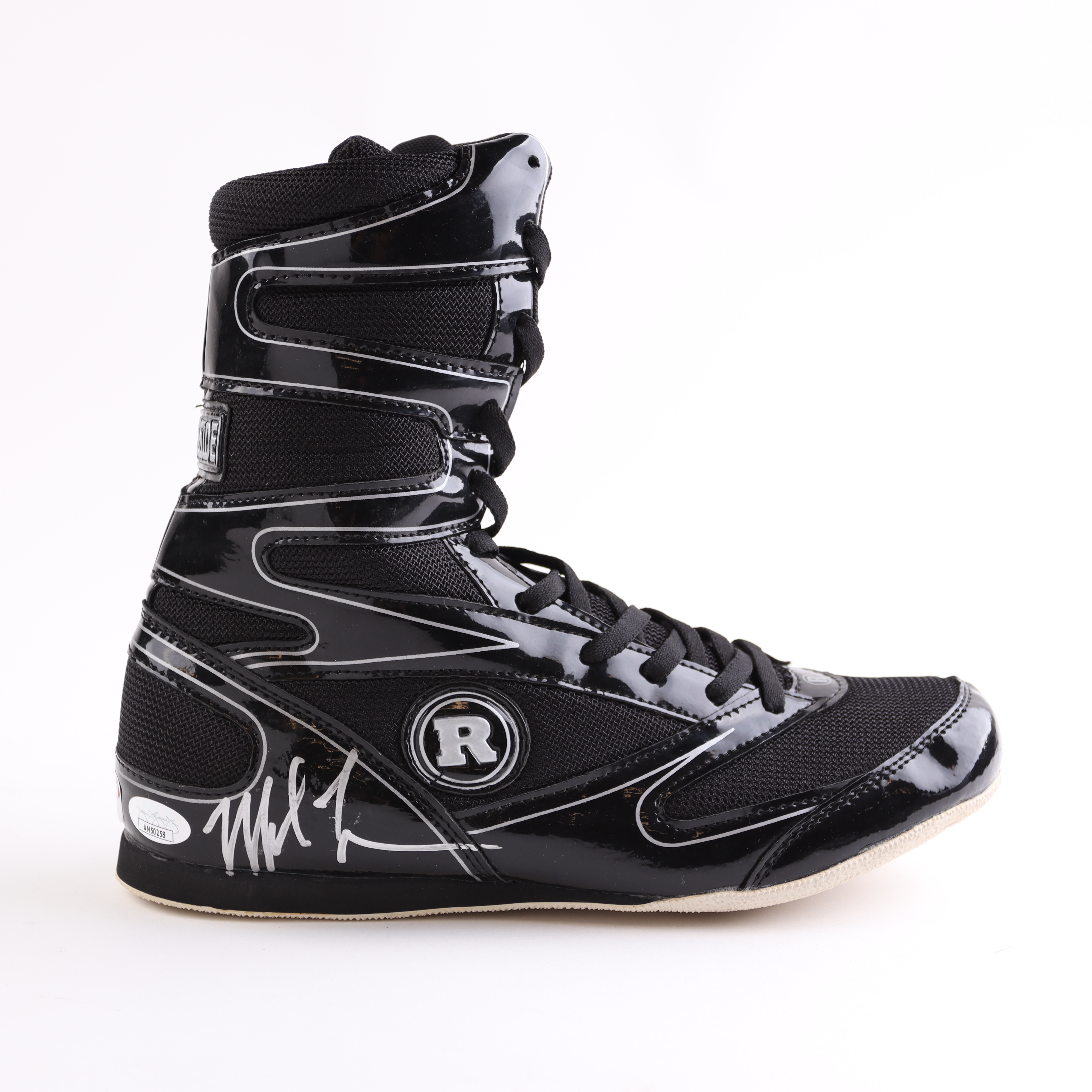 Ringside boxing shoe has been hand-signed by Mike Tyson (HOF). The acrylic display stand and name plate are included as shown.