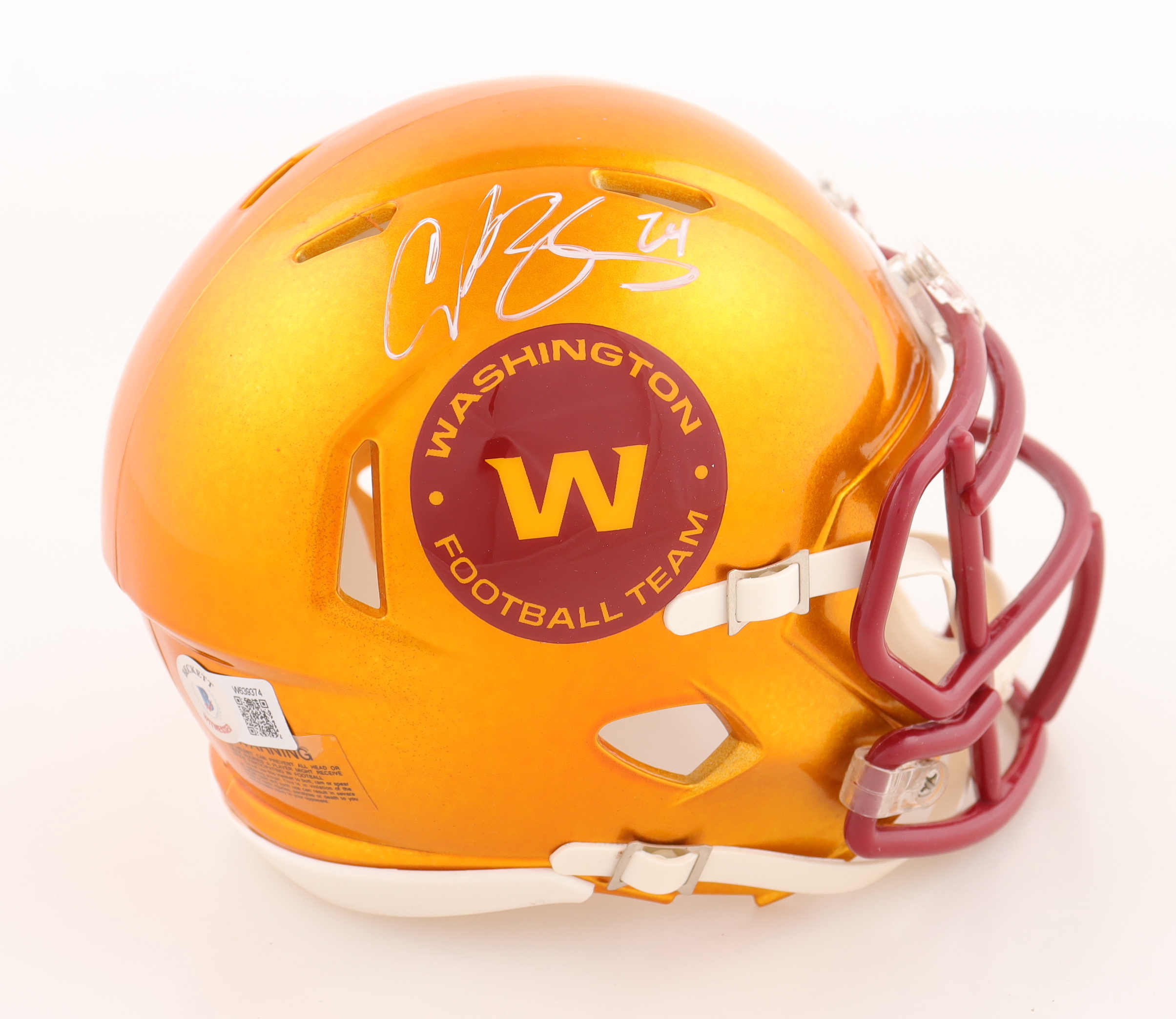 Riddell Washington Football Team flash alternate mini helmet. Hand-signed by Champ Bailey (HOF).