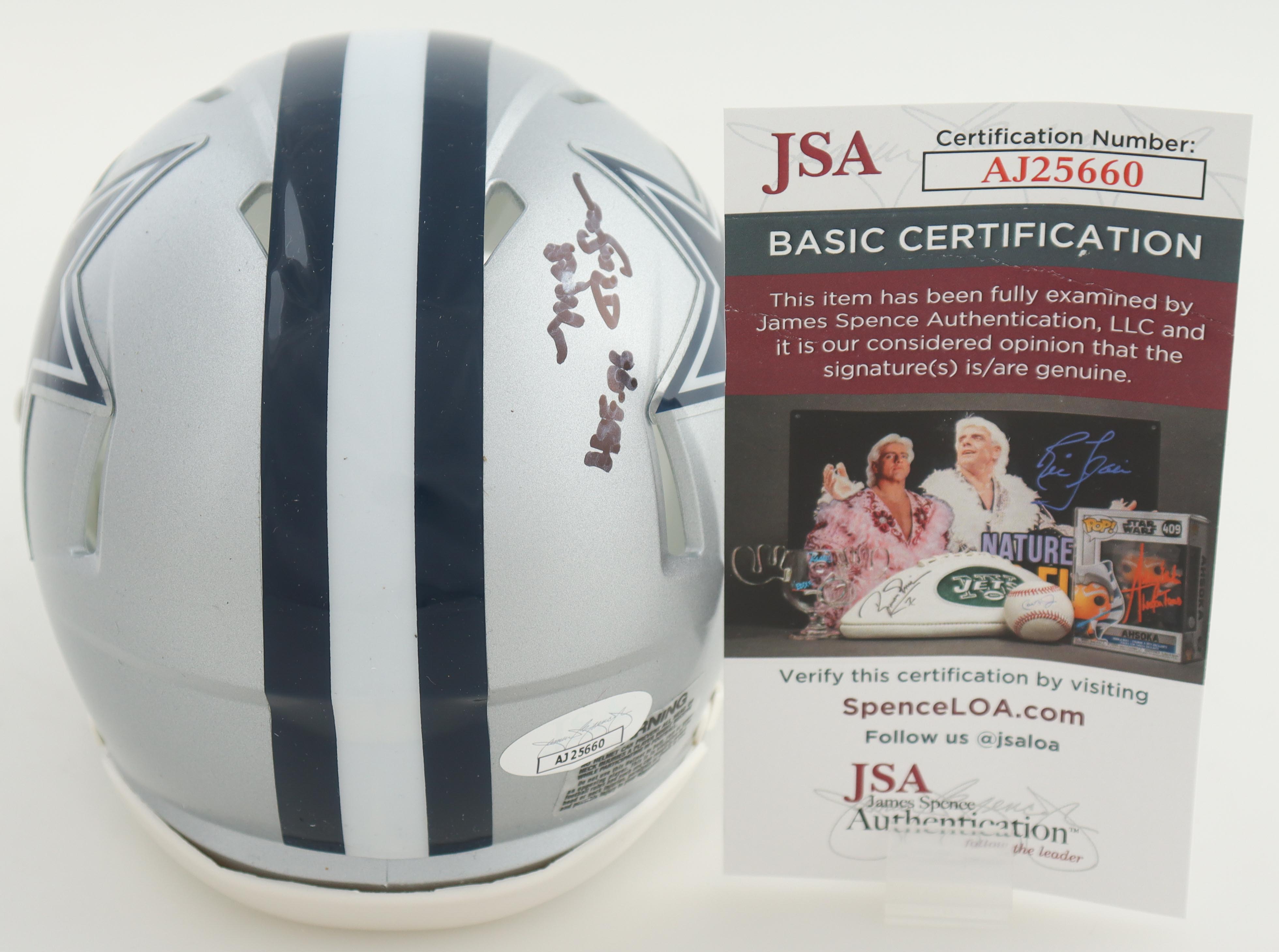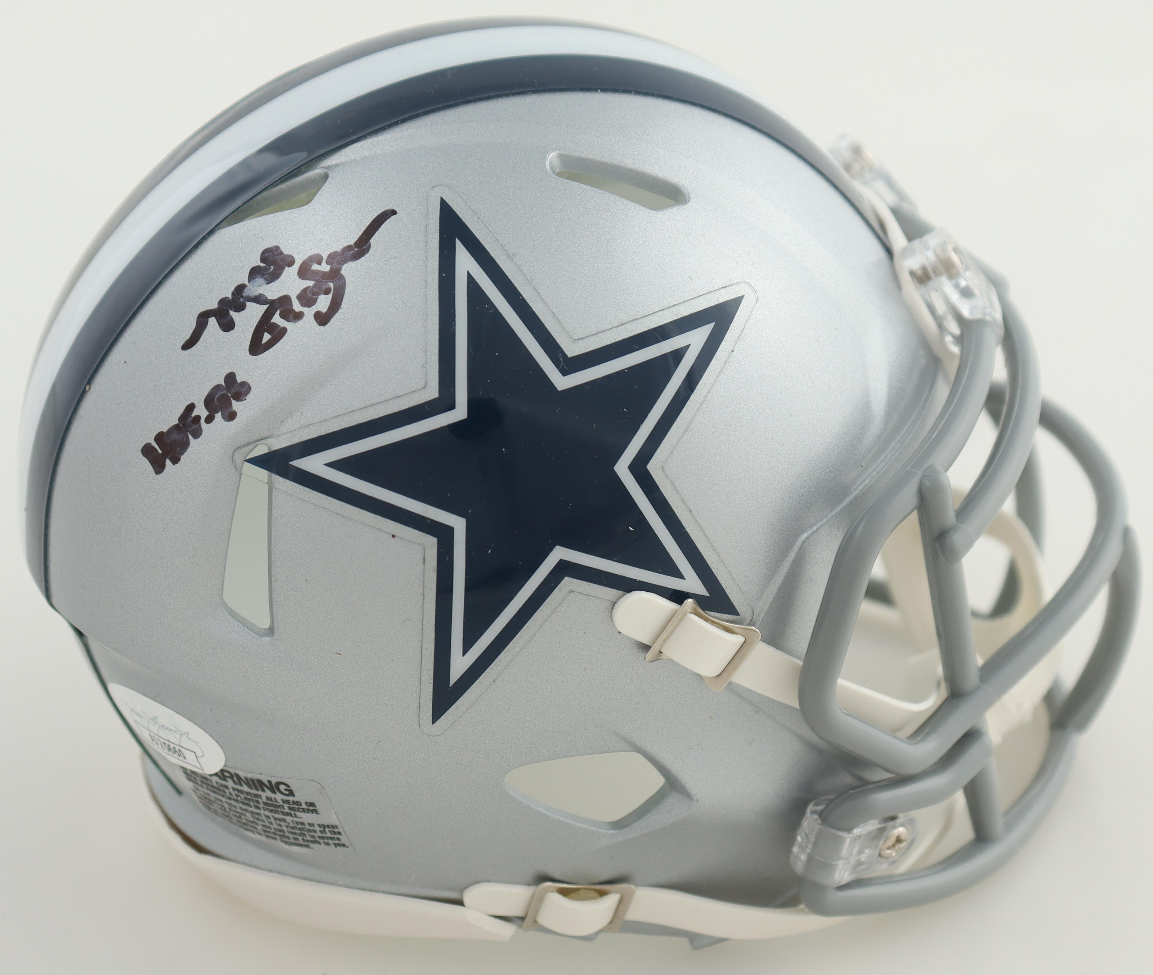 Riddell Dallas Cowboys Speed mini helmet. Hand-signed and inscribed by Mel Renfro (HOF). Please note, the signature is smudged.