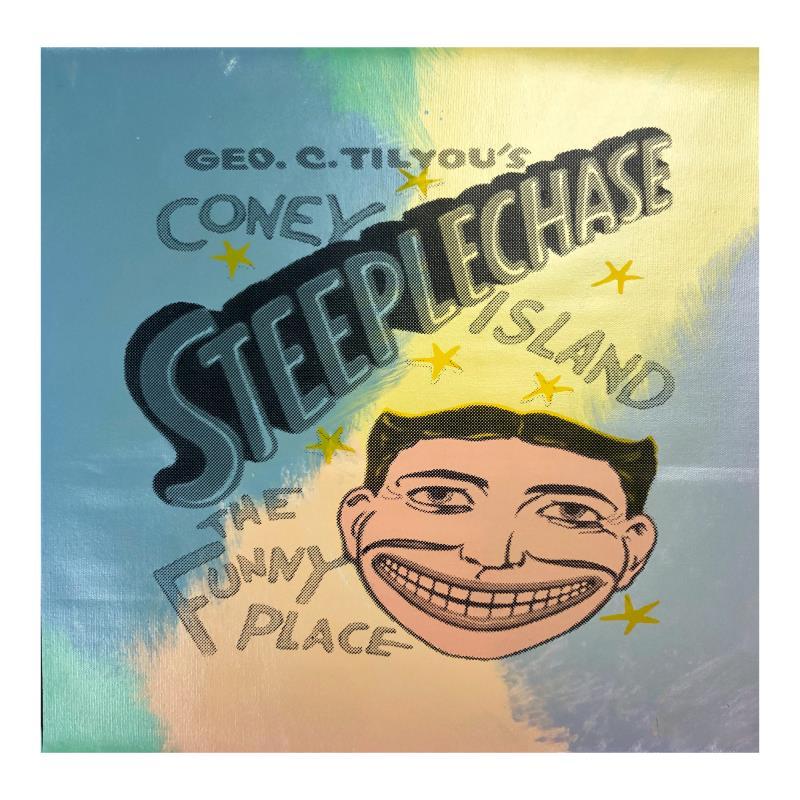 Steve Kaufman Signed "Steeplechase, Coney Island" LE 16x17 Hand-Pulled Silkscreen Unique Mixed Media on Canvas (PA)