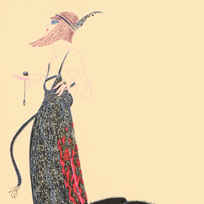 "Black Magic" is a limited edition serigraph on paper by Erte (1892-1990), numbered and hand signed by the artist. Includes Certificate of Authenticity. Measures approx. 15.5" x 20" (border), 10.5" x 15" (image).