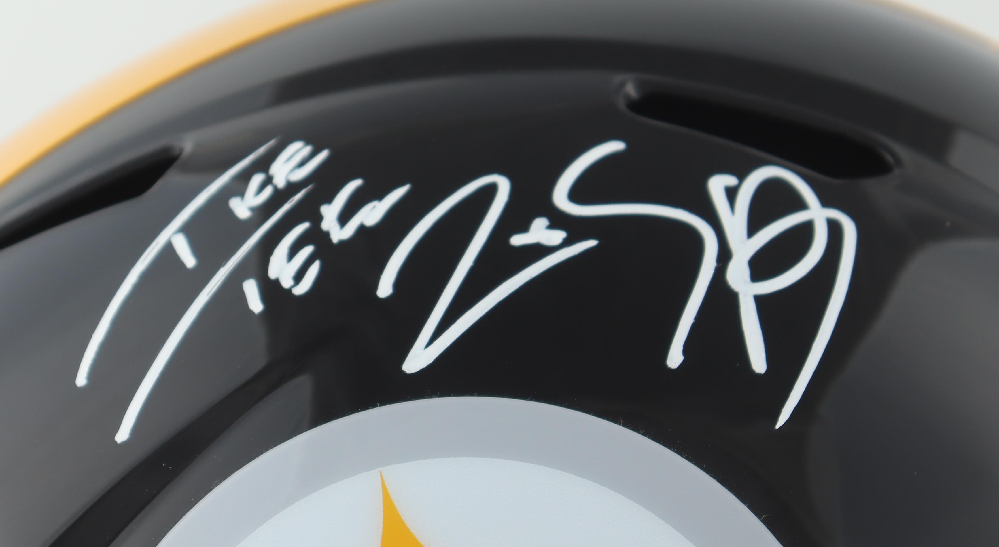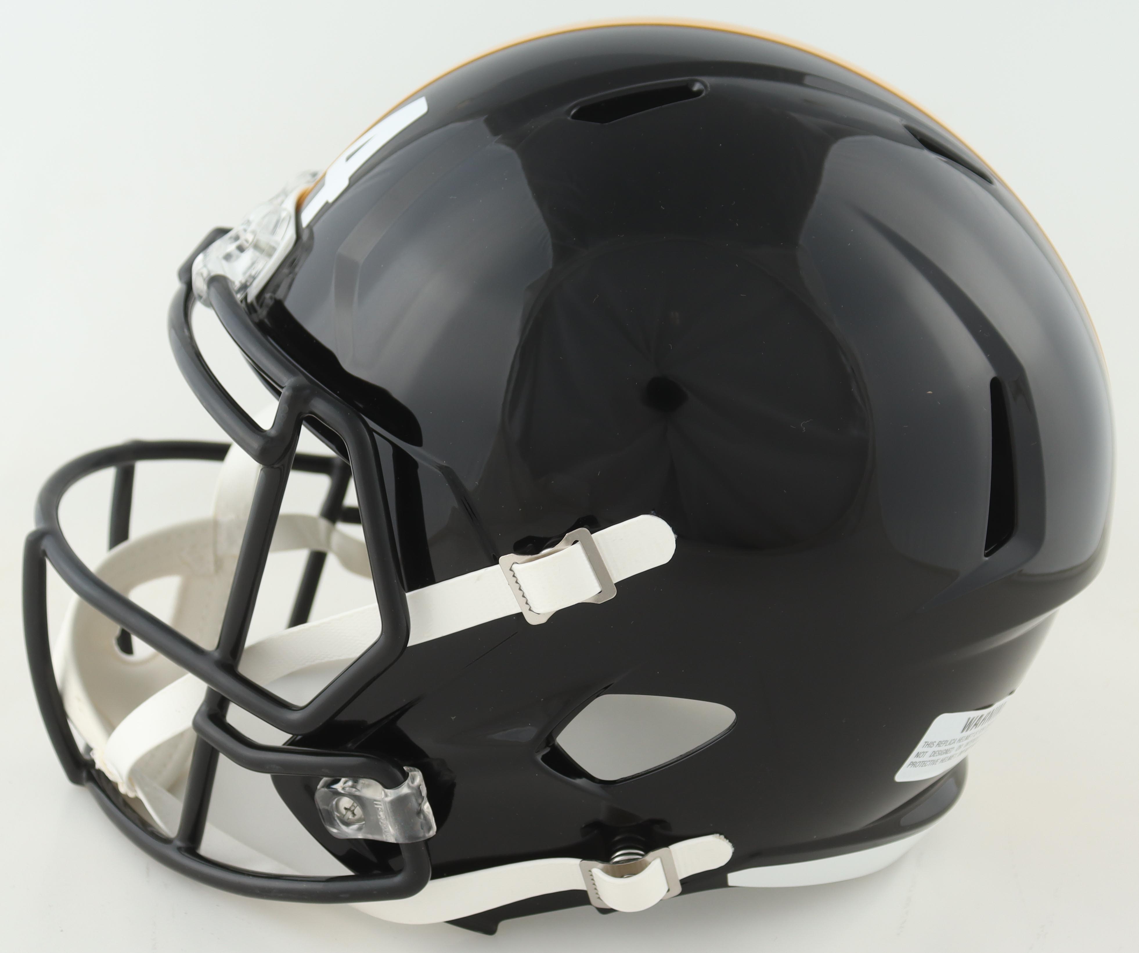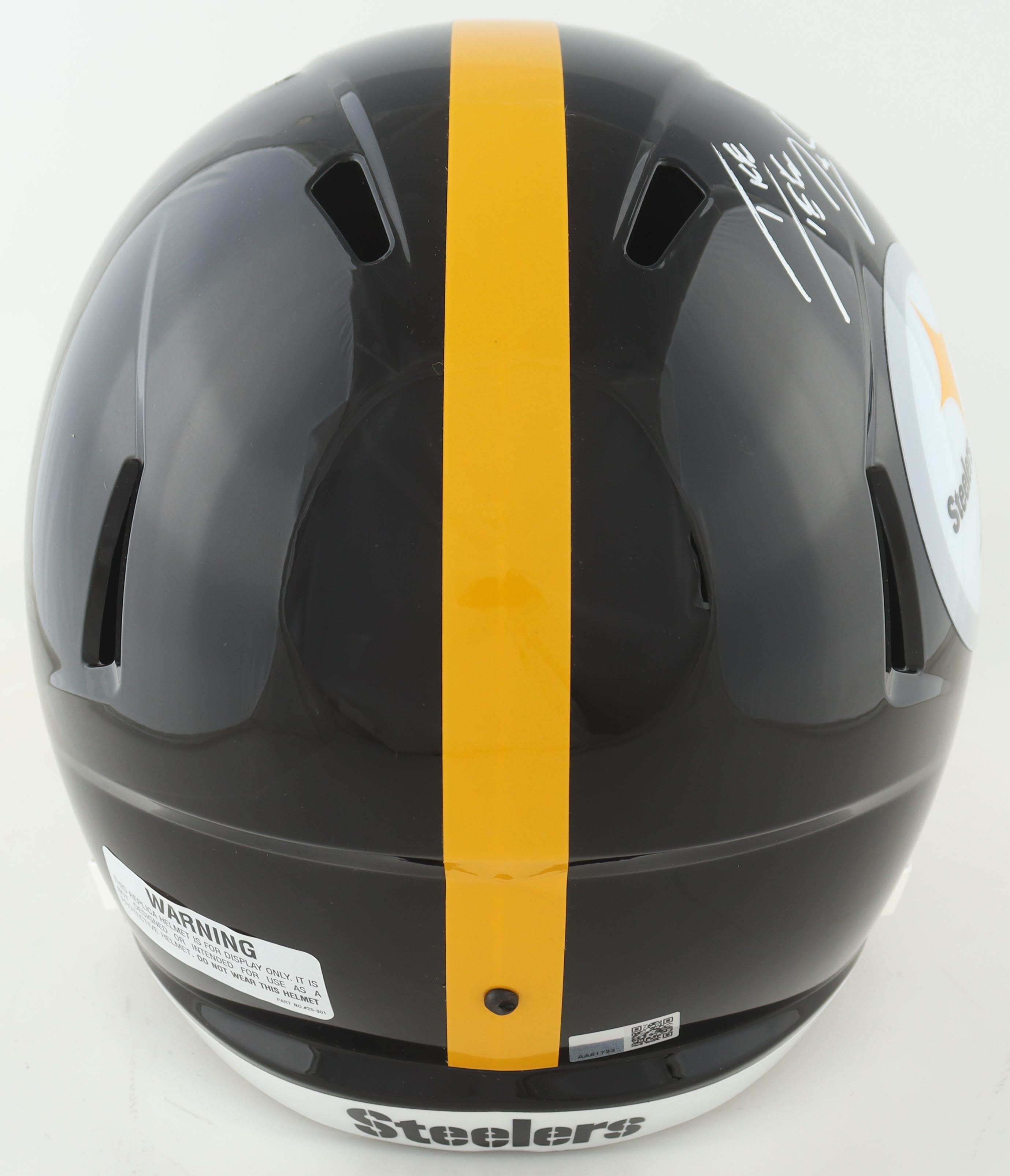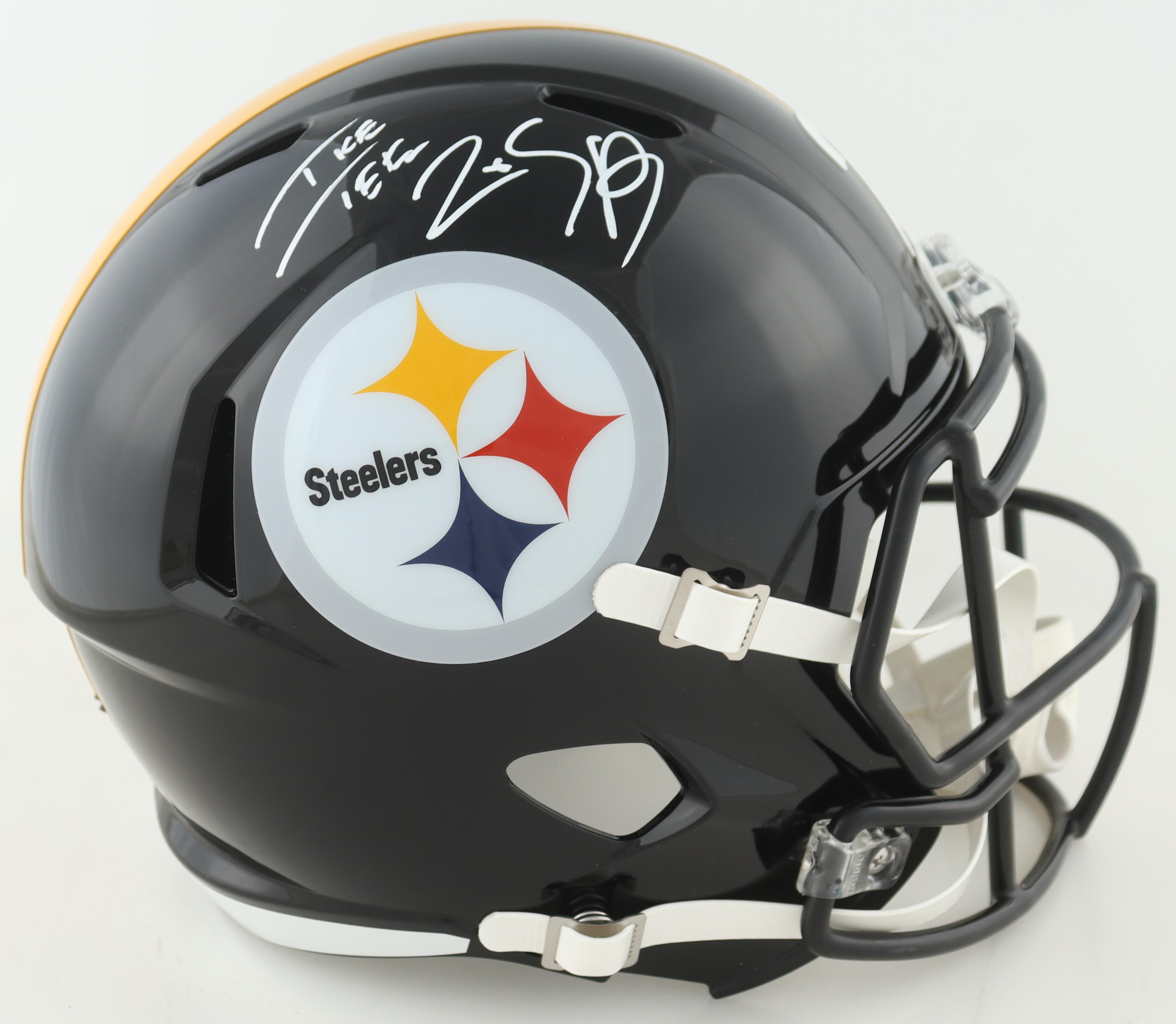 Riddell Pittsburgh Steelers full-size replica speed helmet. Has been hand-signed and inscribed by Ike Taylor.