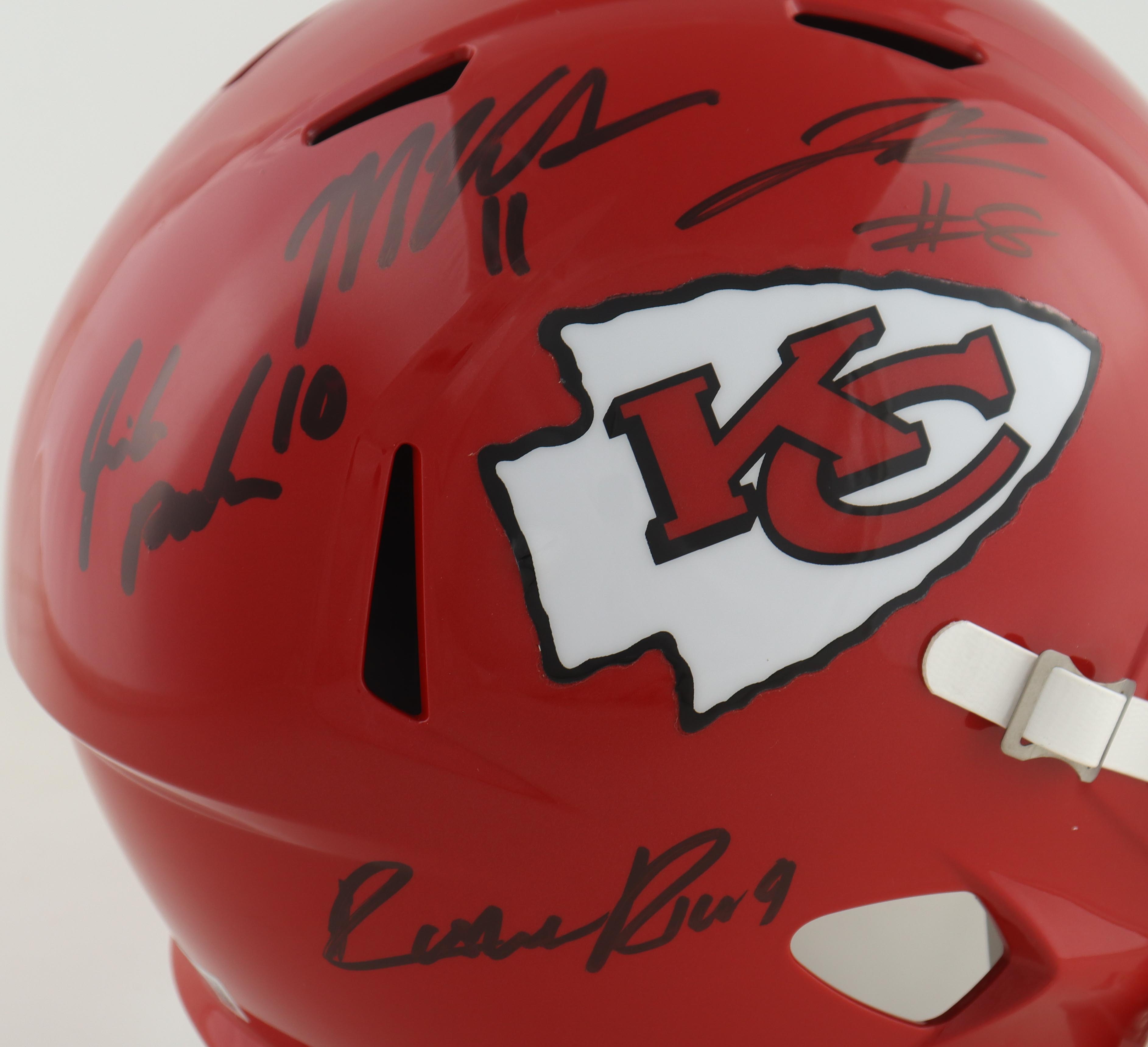 Riddell Kansas City Chiefs full-size replica Speed helmet. Hand-signed by Isiah Pacheco, Rashee Rice, Marquez Valdes-Scantling and Justyn Ross.