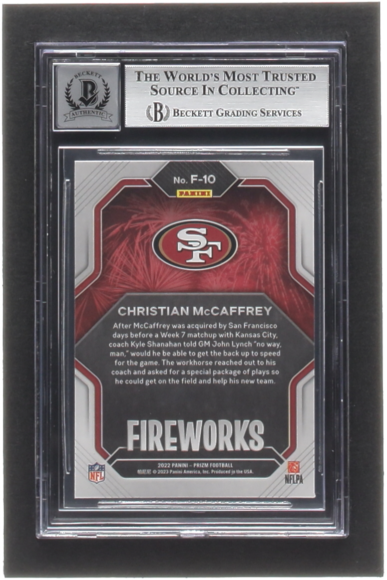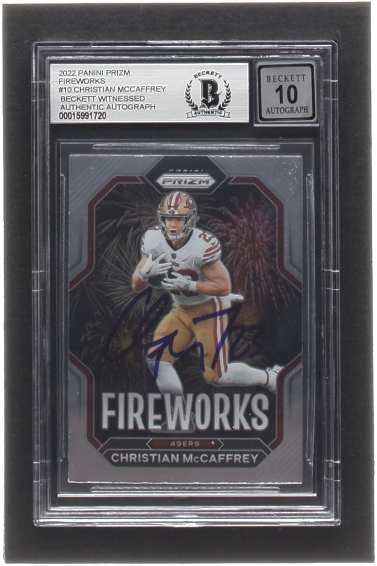 Christian McCaffrey Signed 2022 Panini Prizm Fireworks #10 (BGS | Autograph Graded 10)