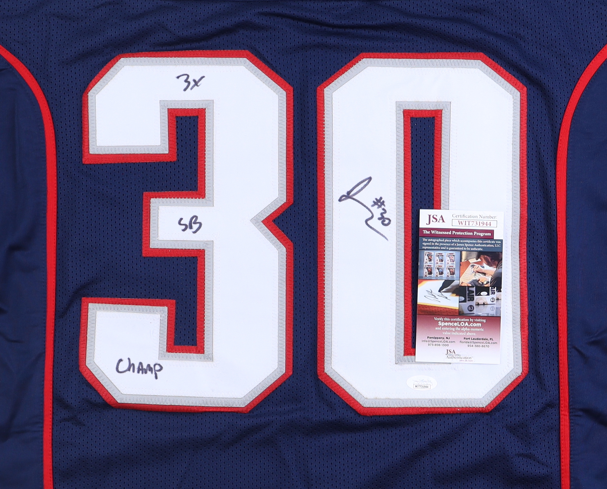Je'Rod Cherry Signed Jersey Inscribed "3X SB Champ" (JSA)