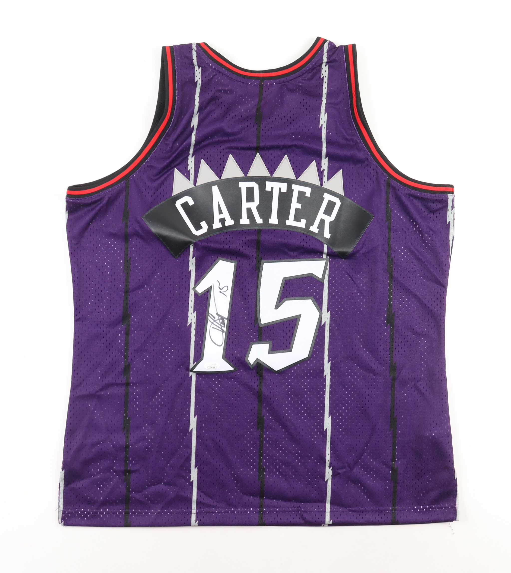 Mitchell & Ness jersey. Everything is pressed on, size XL. Hand-signed by Vince Carter (Toronto Raptors).