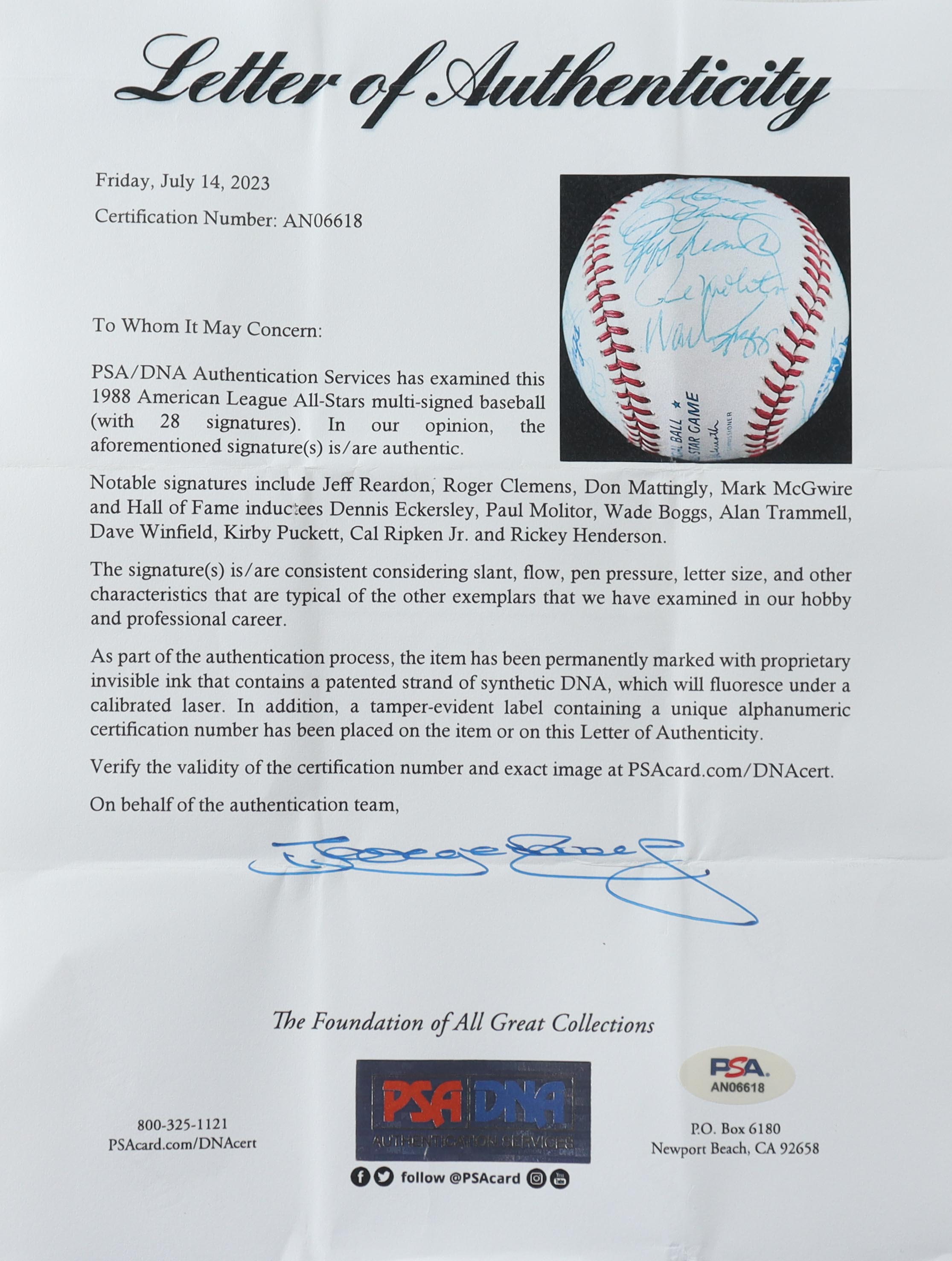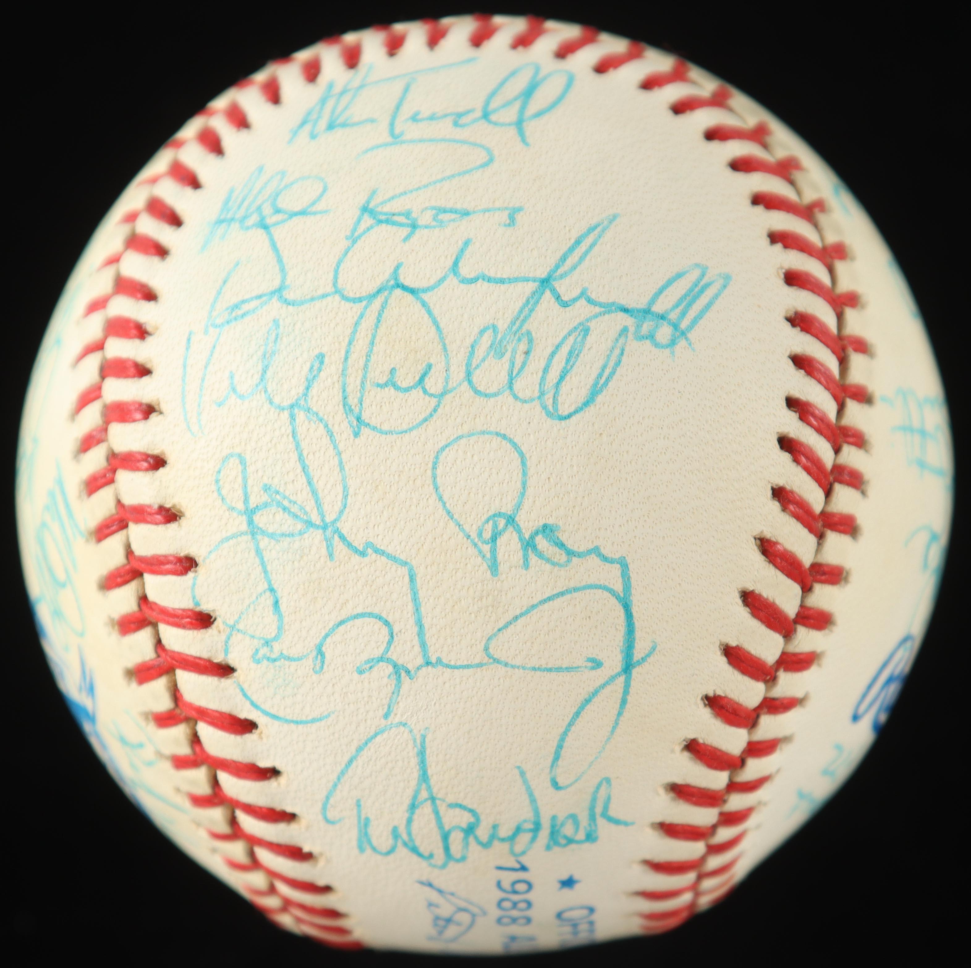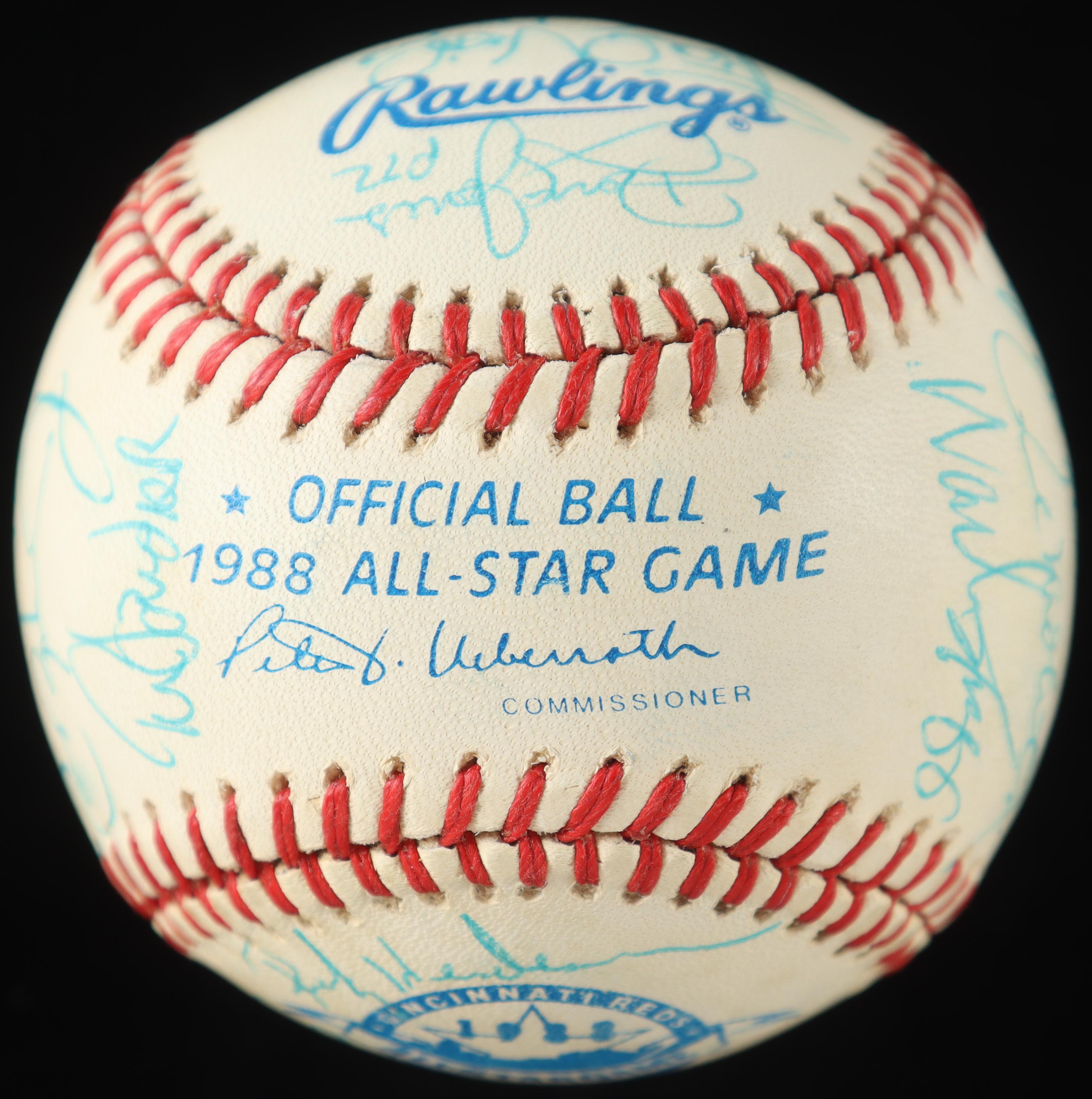 1988 American League All-Stars 1988 All-Star Game Baseball Signed By (28) Cal Ripken Jr., Rickey Henderson, Mark McGwire, Don Mattingly, Roger Clemens, Kirby Puckett (PSA)