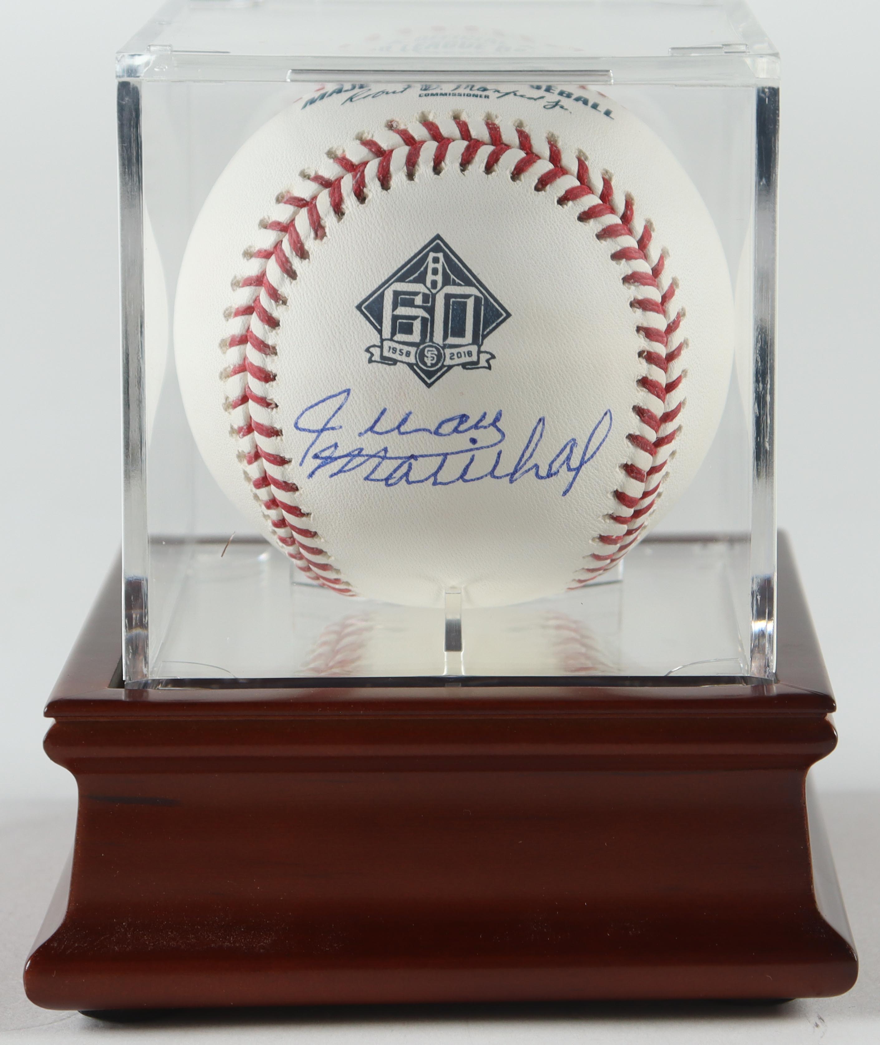 Rawlings Official Major League San Francisco Giants 60th Anniversary Commemorative Baseball. Has been hand-signed by Juan Marichal (San Francisco Giants, HOF). Includes display case as shown.