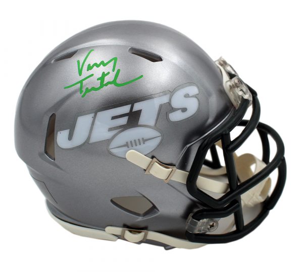 Riddell New York Jets flash alternate speed mini helmet. Hand-signed by Vinny Testaverde.