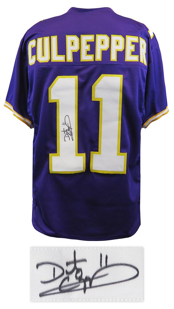 Custom style jersey. Everything sewn on, size XL. Hand-signed by Daunte Culpepper.
