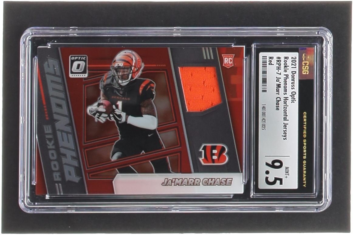 Ja'Marr Chase 2021 Donruss Optic Rookie Phenoms Jerseys Horizontal Red #7 RC (CSG 9.5)
