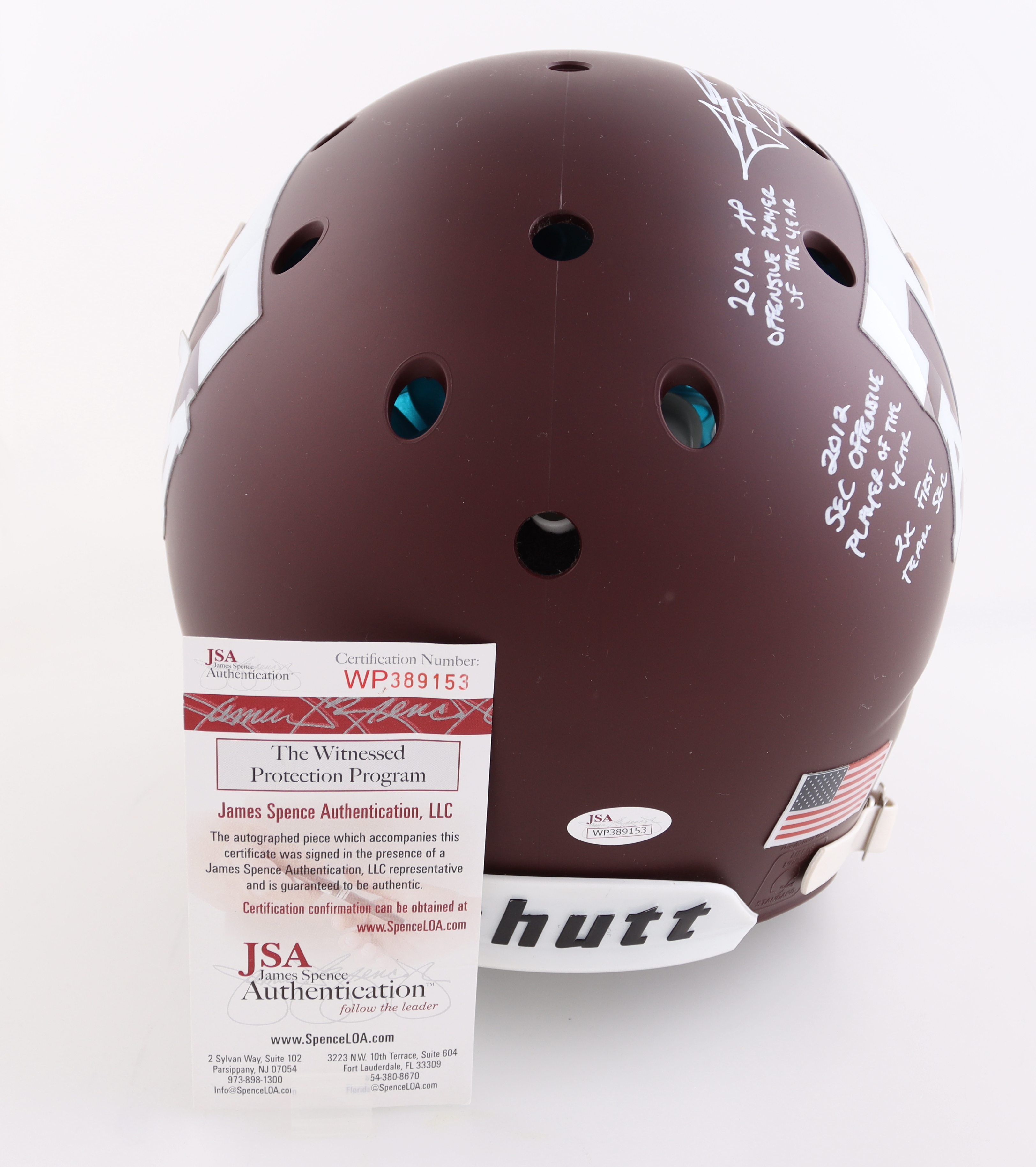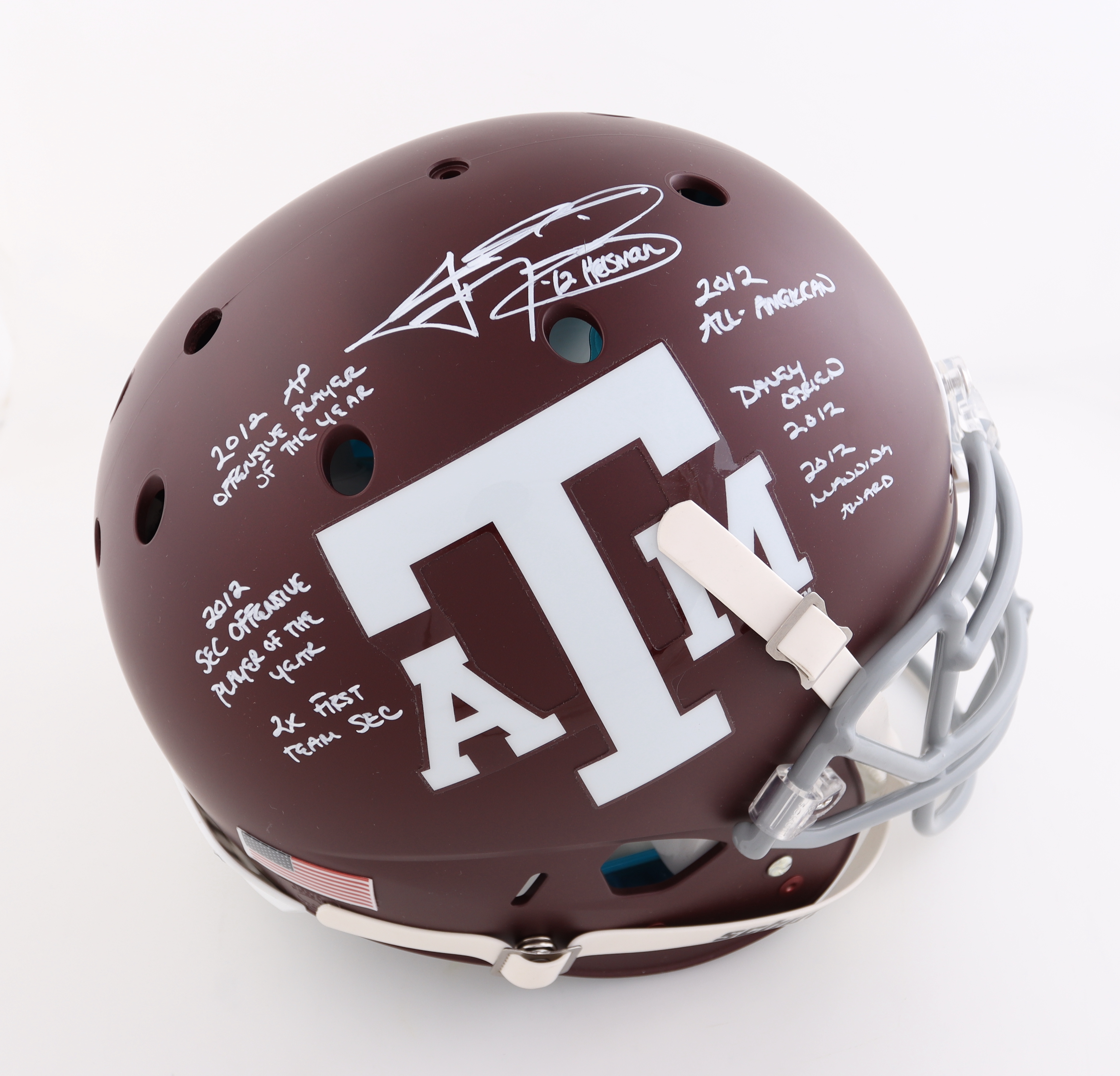 Schutt Texas A&M Aggies full-size authentic on-field helmet. Hand-signed and inscribed by Johnny Manziel.