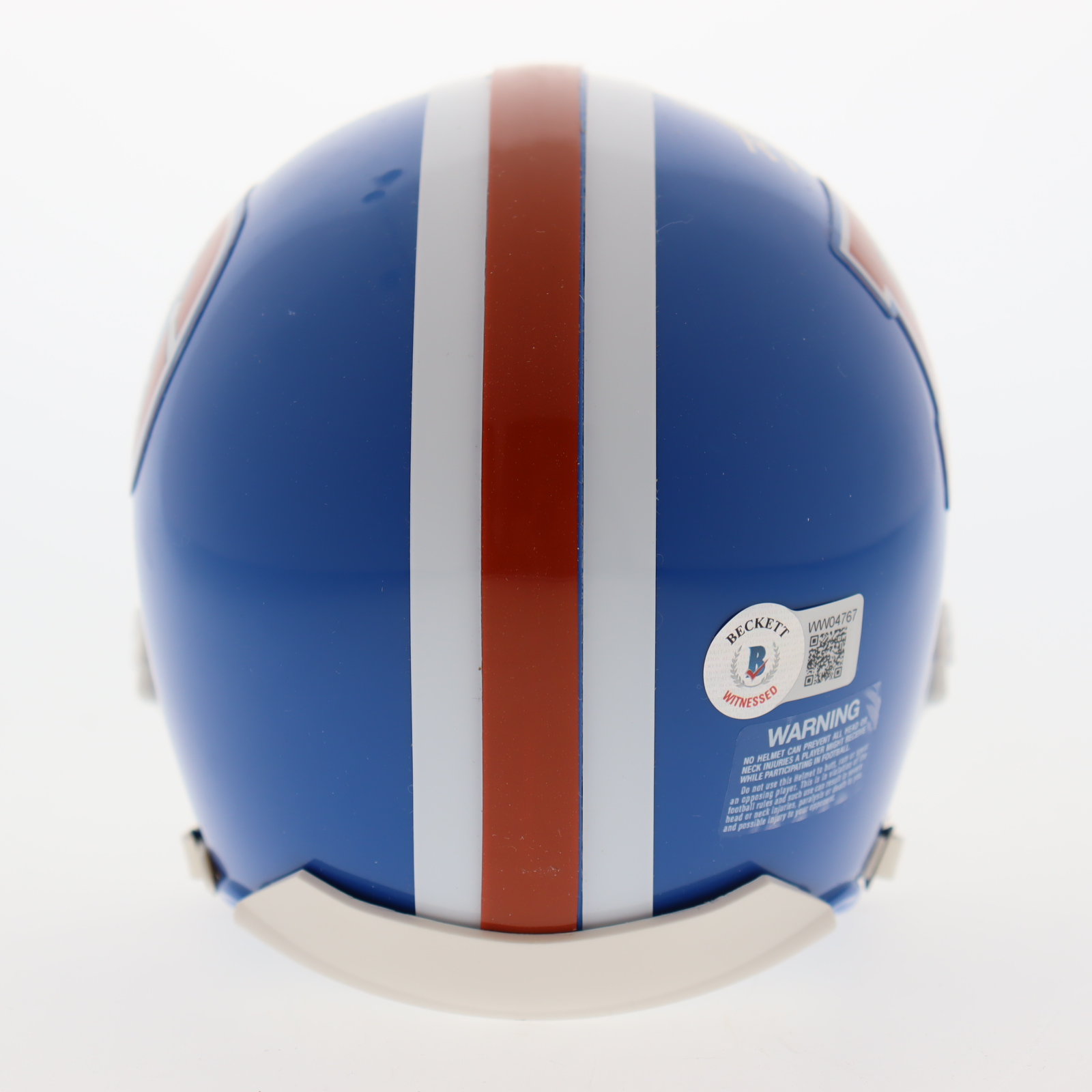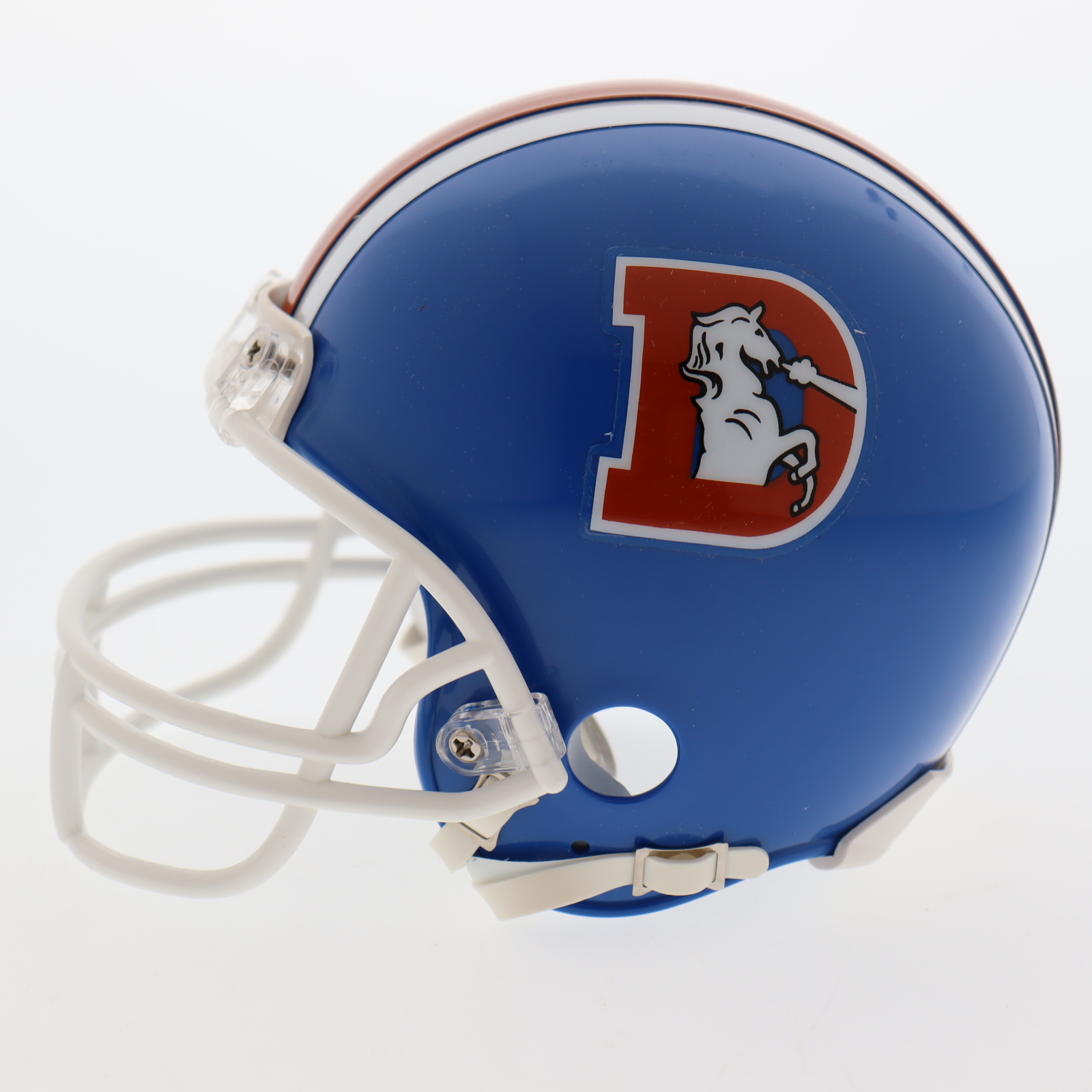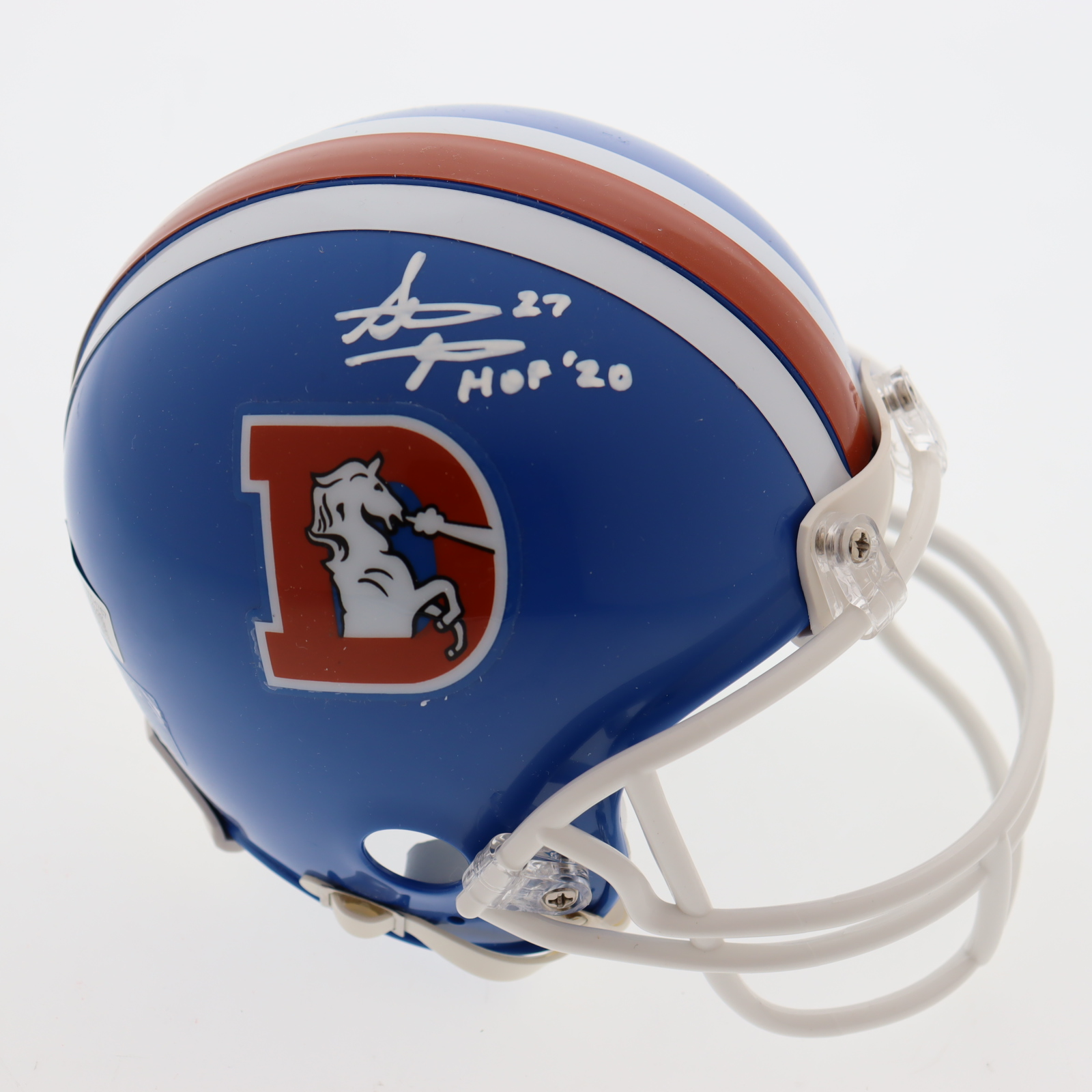 Riddell Denver Broncos Throwback mini helmet. Hand signed and inscribed by Steve Atwater (HOF).