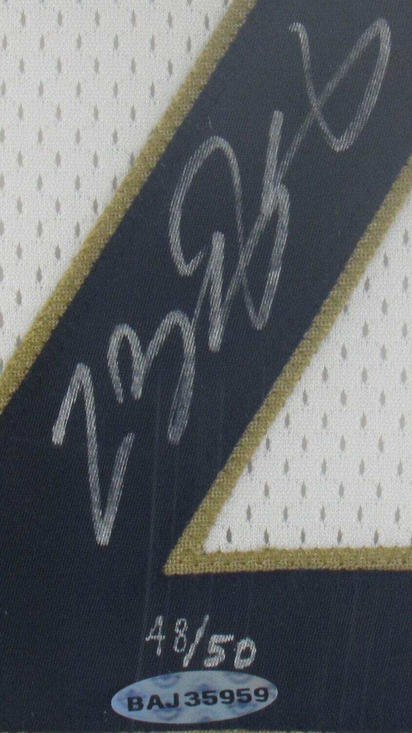 Custom frame measures 34" x 42" in size and features a jersey that has been hand-signed by LeBron James (Los Angeles Lakers). This item has been hand-numbered limited edition 48 out of 50.