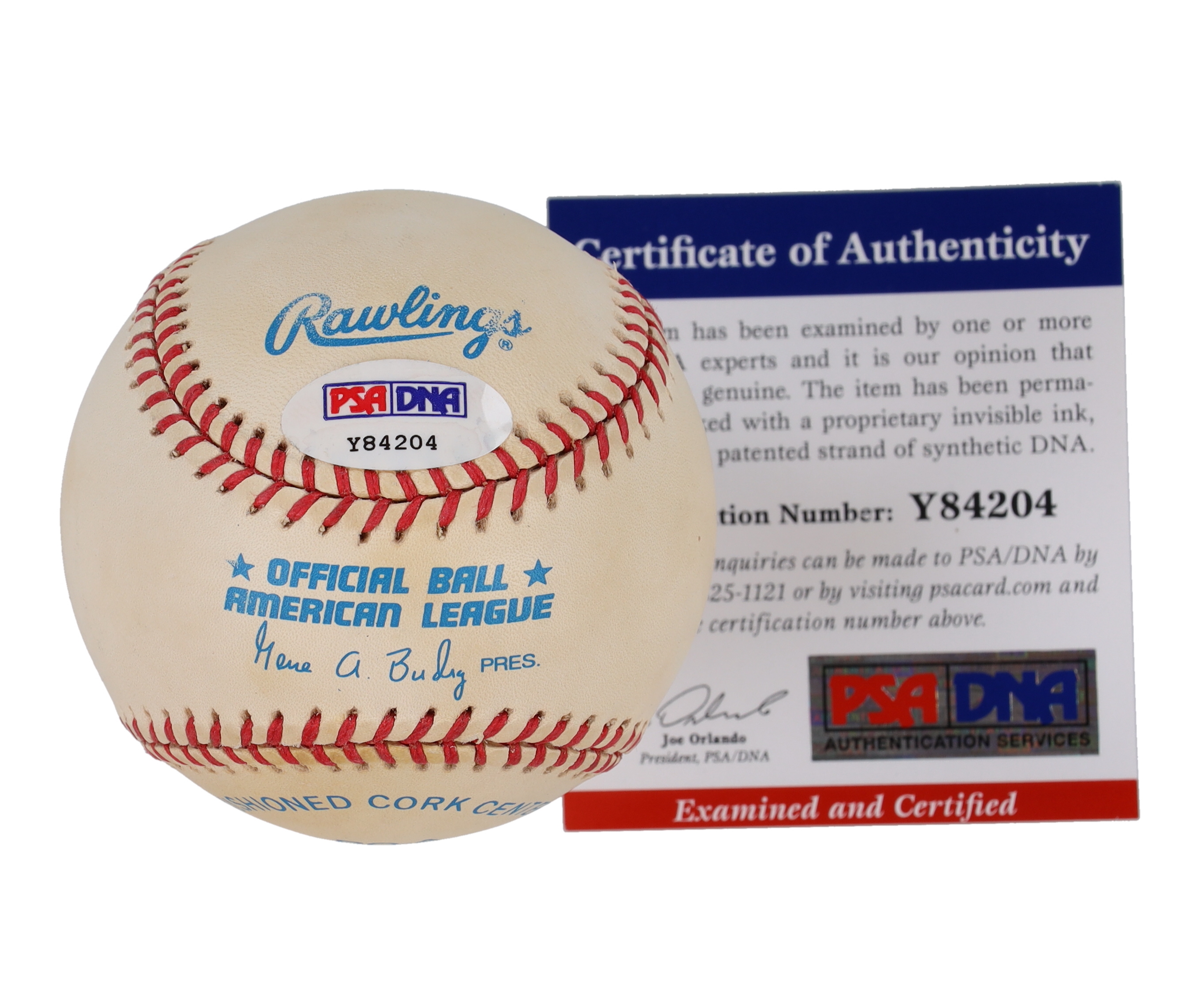 Rawlings Official American League baseball has been hand-signed and inscribed by Reggie Jackson (New York Yankees, HOF). Please note, the baseball is naturally toned.