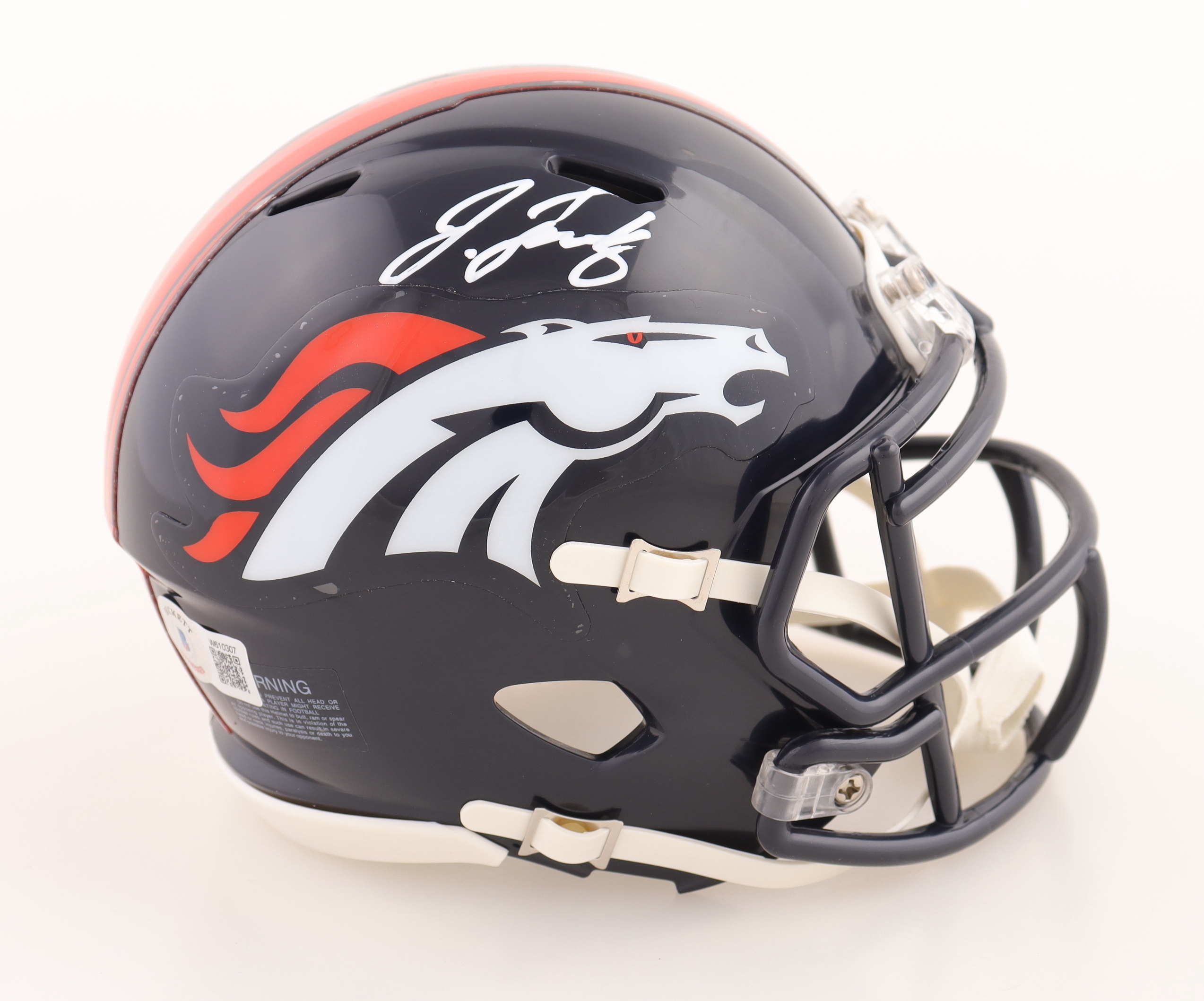 Riddell Denver Broncos Speed mini helmet. Hand-signed by Jerry Jeudy.